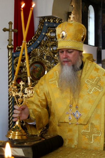 Управляющему епархией сослужили клирики собора. По окончании богослужения архипастырь обратился к верующим с проповедью.