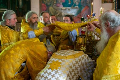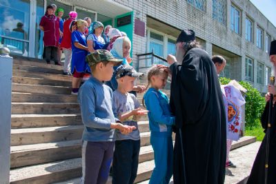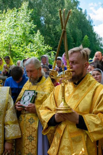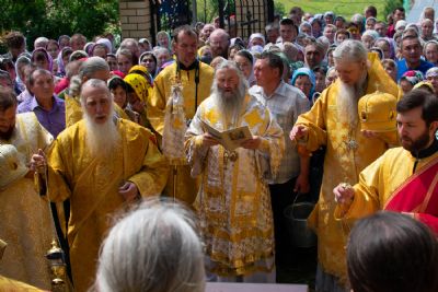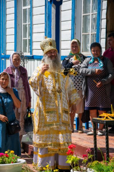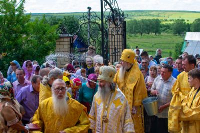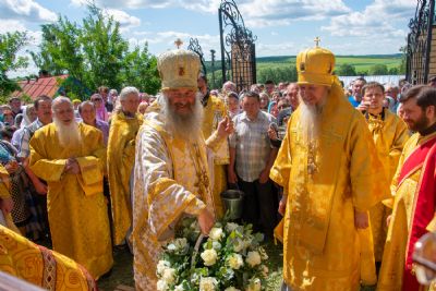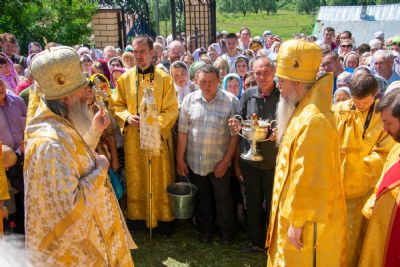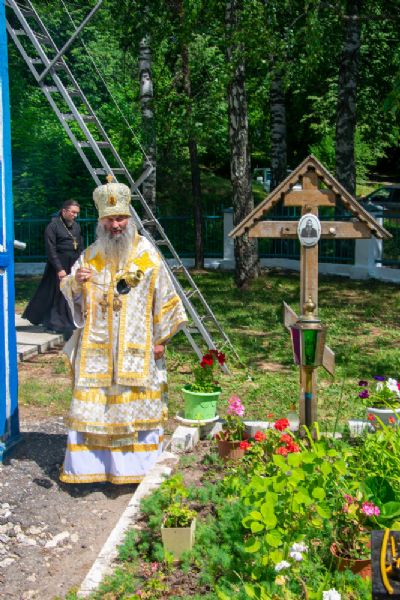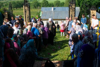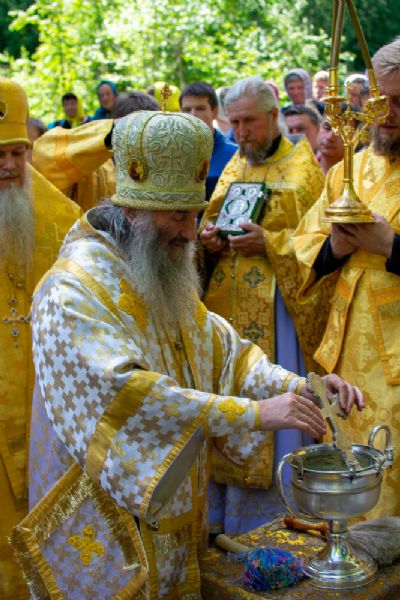 После трапезы митрополит Иоанн, епископ Феофан и священство посетили святые источники: иконы Божией Матери «Смоленская» и преподобного Серафима Саровского.