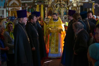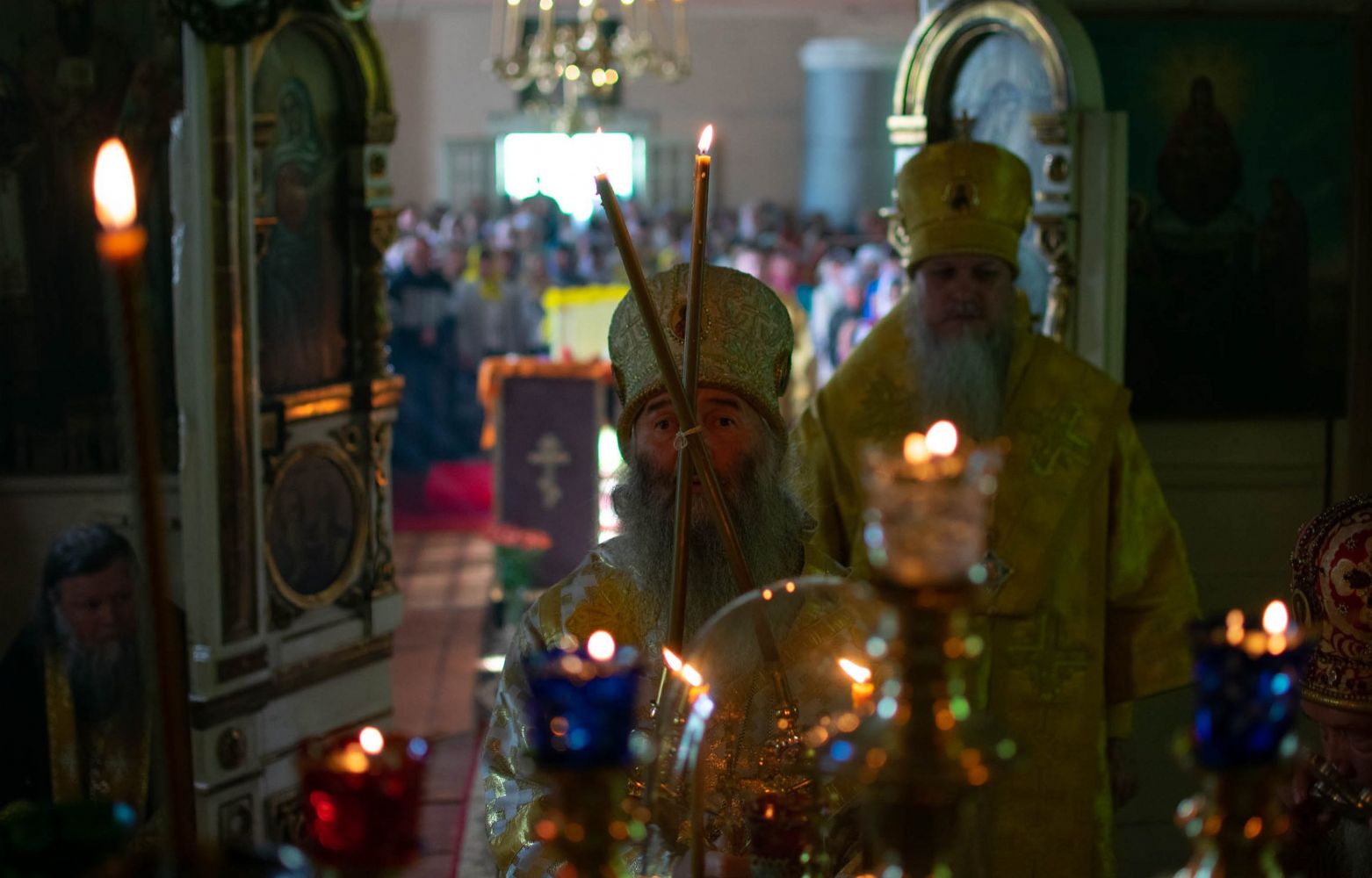 Архиереям сослужили духовенство Волжской и Йошкар-Олинской епархий. Песнопения исполняли три хора. Чтения и песнопения Литургии исполнялись на славянском и марийском языках.