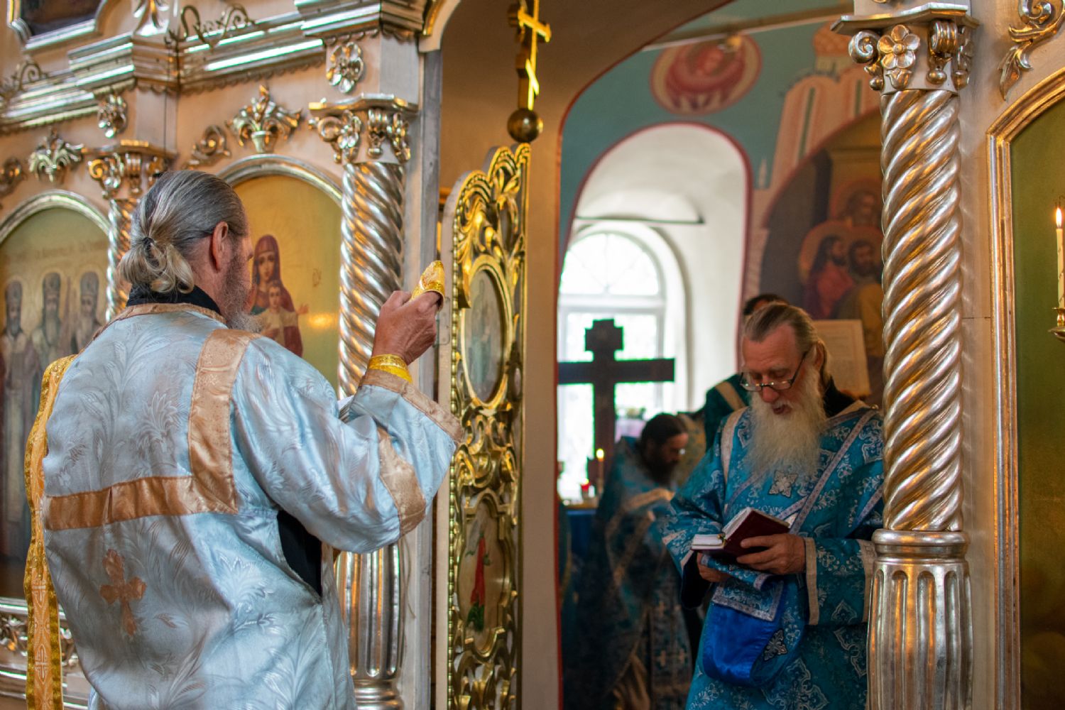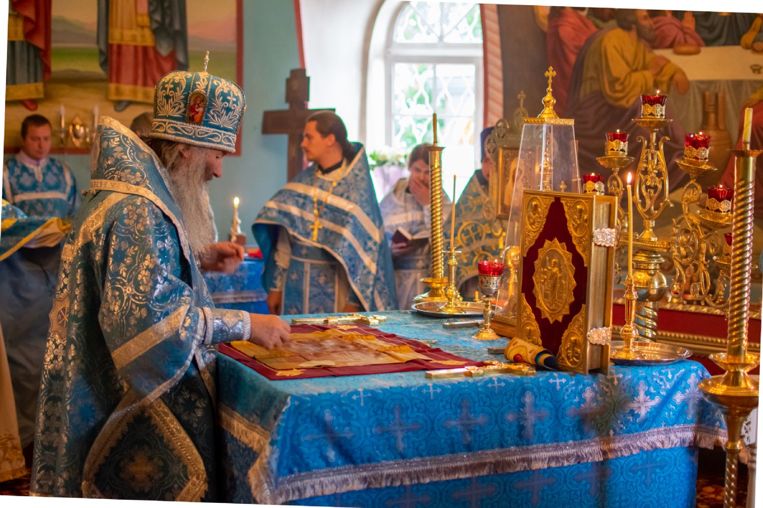 Владыке сослужили настоятель храма, благочинный Горномарийского церковного округа протоиерей Алексий Сущев, настоятель Троицкого храма с. Емелево протоиерей Александр Алешев, настоятель Преображенского храма с. Кожважи протоиерей Николай Соколов, настоятель Троицкого храма с. Троицкий Посад протоиерей Виктор Соловьев, настоятель Петропавловского храма с. Кузнецово протоиерей Иоанн Захаров, настоятель храма Рождества Иоанна Предтечи с. Коротни игумен Никодим (Актанаев), настоятель Святоникольского храма с. Микряково протоиерей Александр Лукьянов, настоятель Смоленского собора г. Козьмодемьянска протоиерей Алексей Евсеев, настоятель храма Владимирской иконы Божией Матери с. Владимирское иерей Алексей Васюткин, настоятель храма Рождества Христова с. Еласы иерей Александр Сиситкин и клирик храма Рождества Пресвятой Богородицы с. Семеновка протодиакон Михаил Козловский.