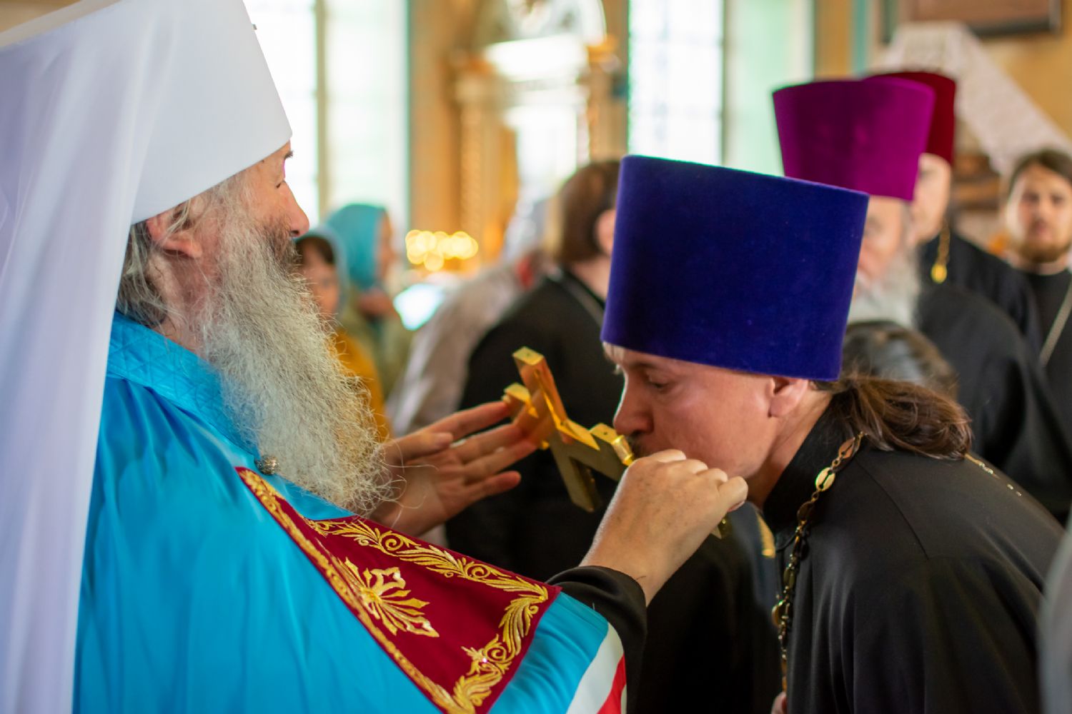 Богослужение началось торжественной встречей митрополита Иоанна и облачением в центре храма.