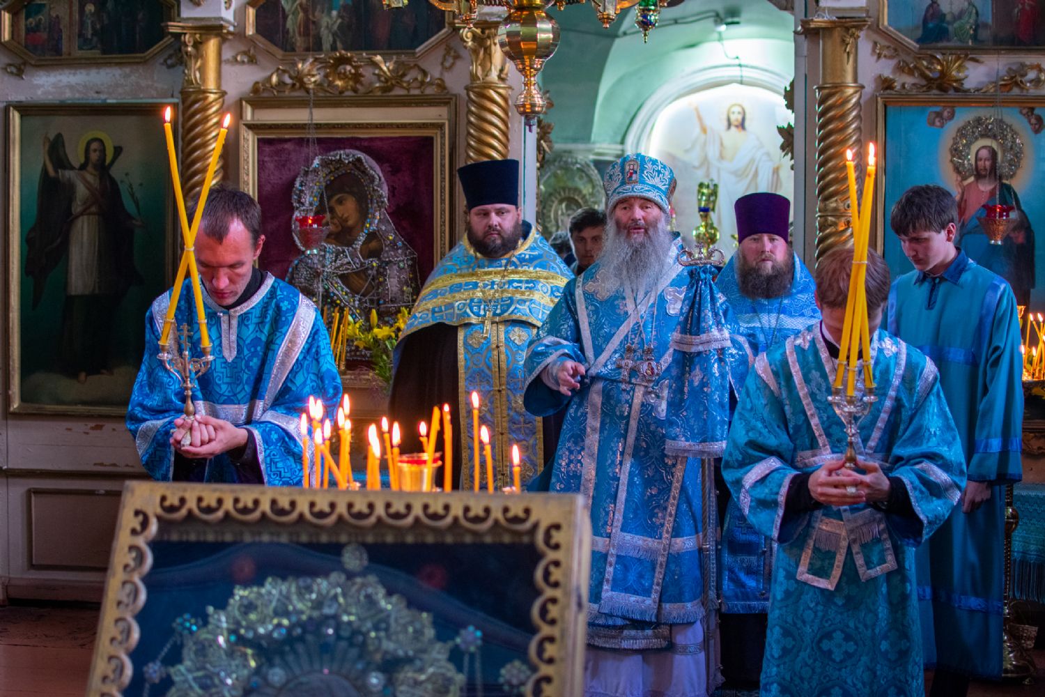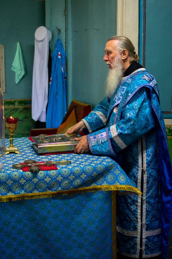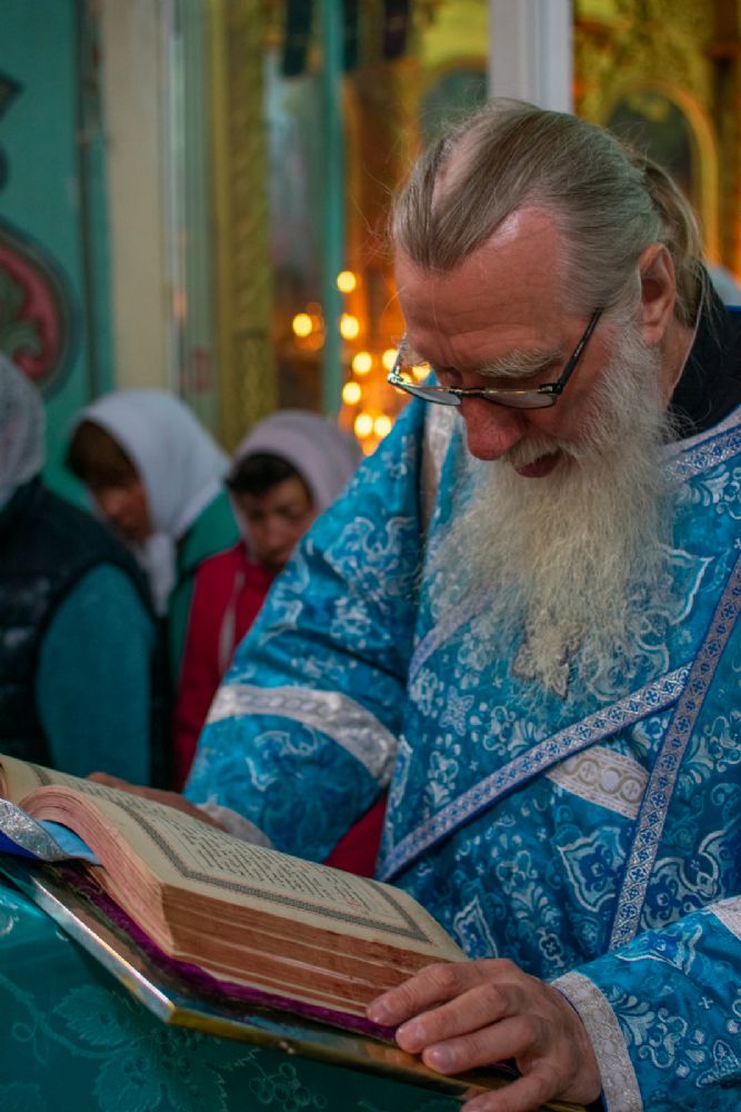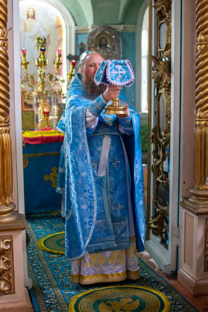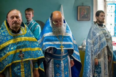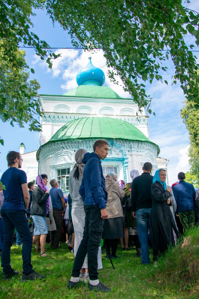 Владыке сослужили настоятель храма иерей Алексей Васюткин, настоятель Троицкого храма с. Емелево протоиерей Александр Алешев, настоятель Троицкого храма с. Троицкий Посад протоиерей Виктор Соловьев, настоятель Преображенского храма с. Кожважи протоиерей Николай Соколов, настоятель храма Рождества Христова с. Пайгусово иерей Сергий Князев, настоятель Введенского храма д. Выселок Революции иерей Василий Решетников, настоятель храма Рождества Христова с. Еласы иерей Александр Сиситкин и клирик храма Рождества Пресвятой Богородицы с. Семеновка протодиакон Михаил Козловский.