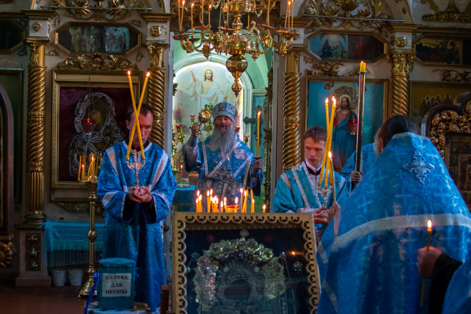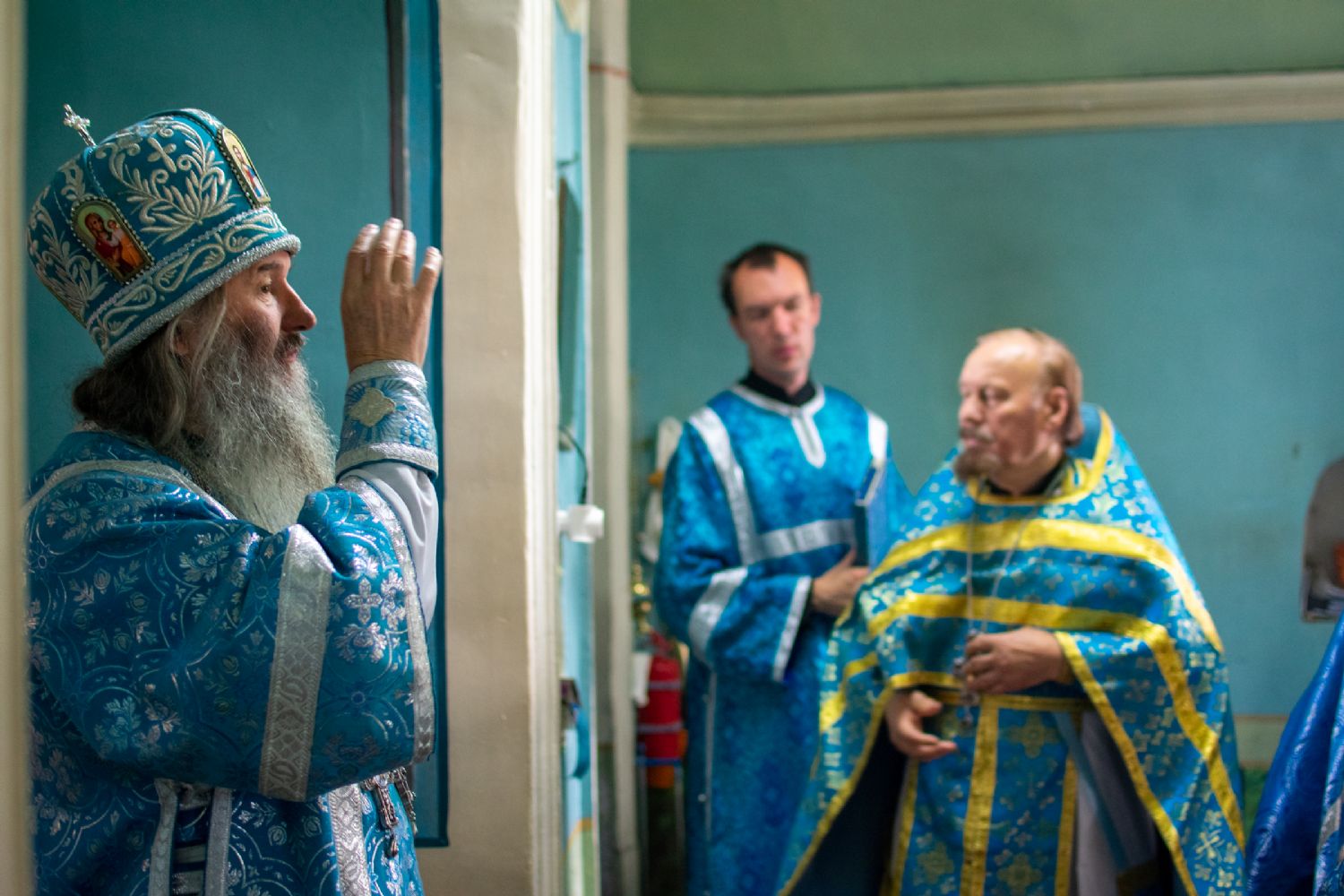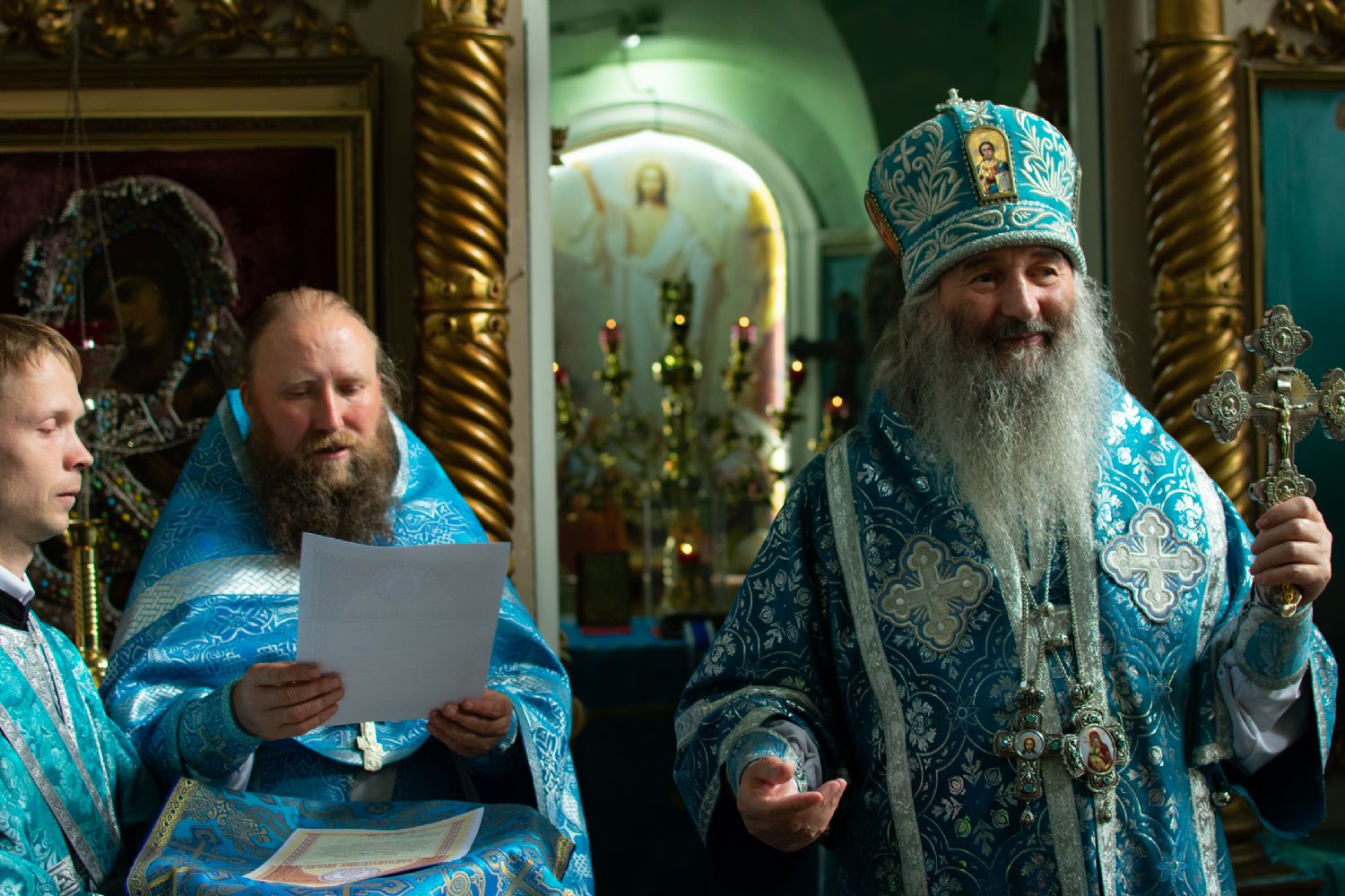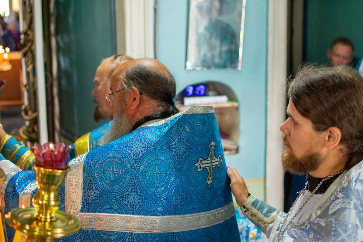 Владыке сослужили настоятель храма иерей Алексей Васюткин, настоятель Троицкого храма с. Емелево протоиерей Александр Алешев, настоятель Троицкого храма с. Троицкий Посад протоиерей Виктор Соловьев, настоятель Преображенского храма с. Кожважи протоиерей Николай Соколов, настоятель храма Рождества Христова с. Пайгусово иерей Сергий Князев, настоятель Введенского храма д. Выселок Революции иерей Василий Решетников, настоятель храма Рождества Христова с. Еласы иерей Александр Сиситкин и клирик храма Рождества Пресвятой Богородицы с. Семеновка протодиакон Михаил Козловский.