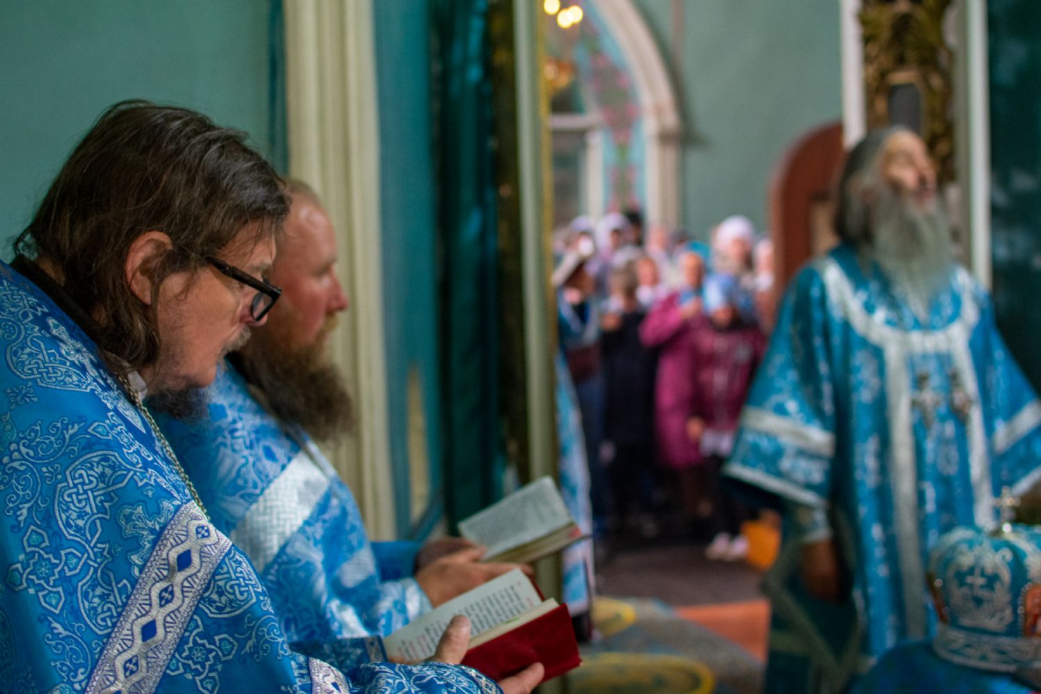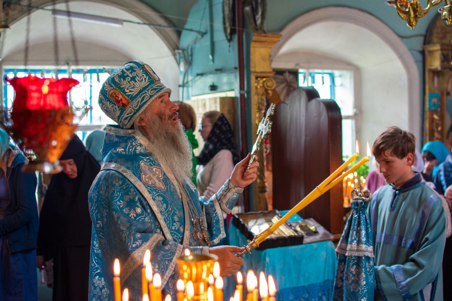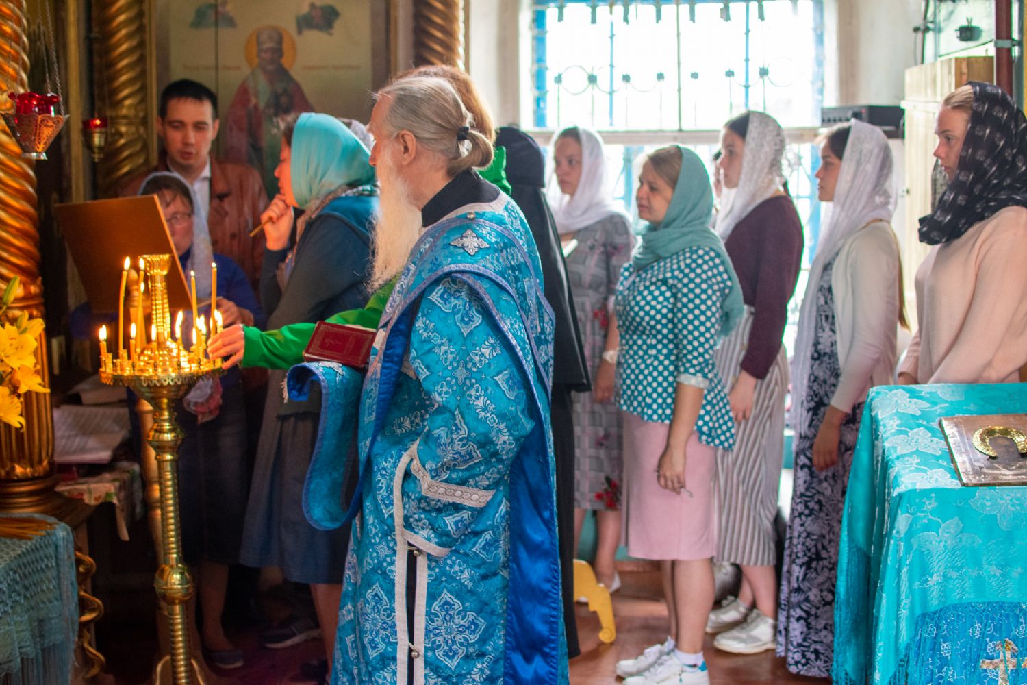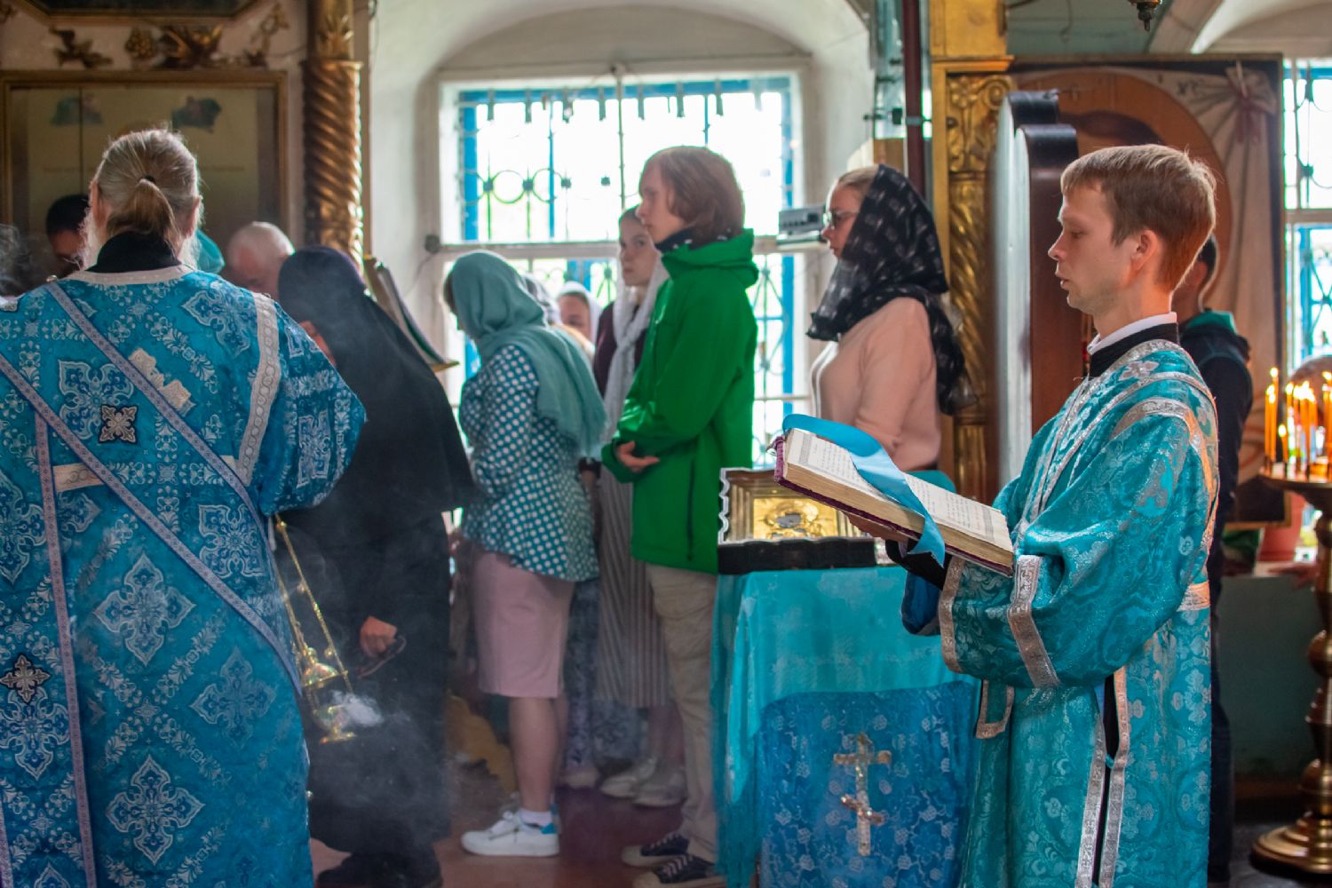 Владыке сослужили настоятель храма иерей Алексей Васюткин, настоятель Троицкого храма с. Емелево протоиерей Александр Алешев, настоятель Троицкого храма с. Троицкий Посад протоиерей Виктор Соловьев, настоятель Преображенского храма с. Кожважи протоиерей Николай Соколов, настоятель храма Рождества Христова с. Пайгусово иерей Сергий Князев, настоятель Введенского храма д. Выселок Революции иерей Василий Решетников, настоятель храма Рождества Христова с. Еласы иерей Александр Сиситкин и клирик храма Рождества Пресвятой Богородицы с. Семеновка протодиакон Михаил Козловский.