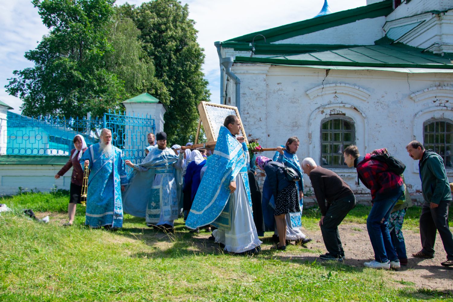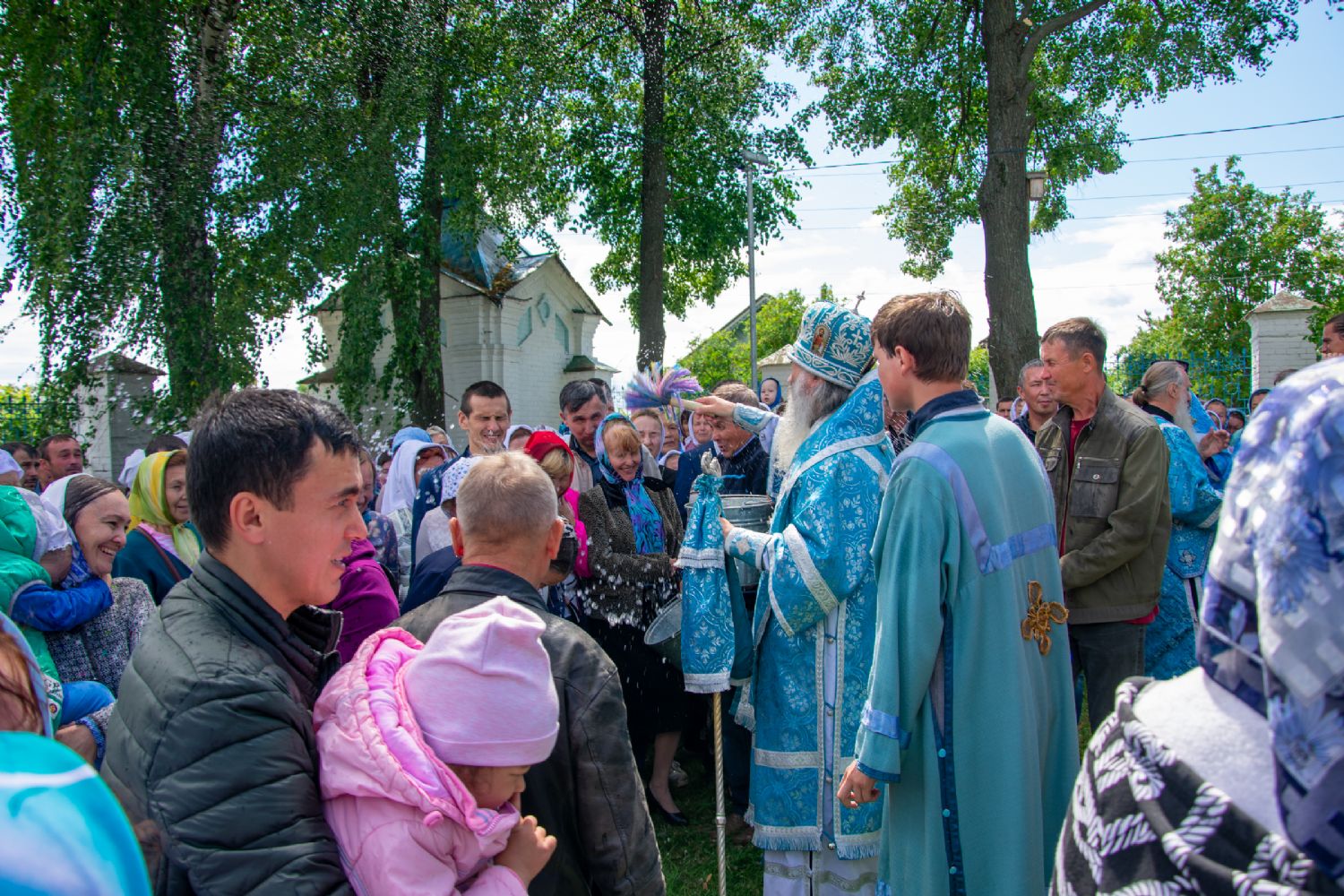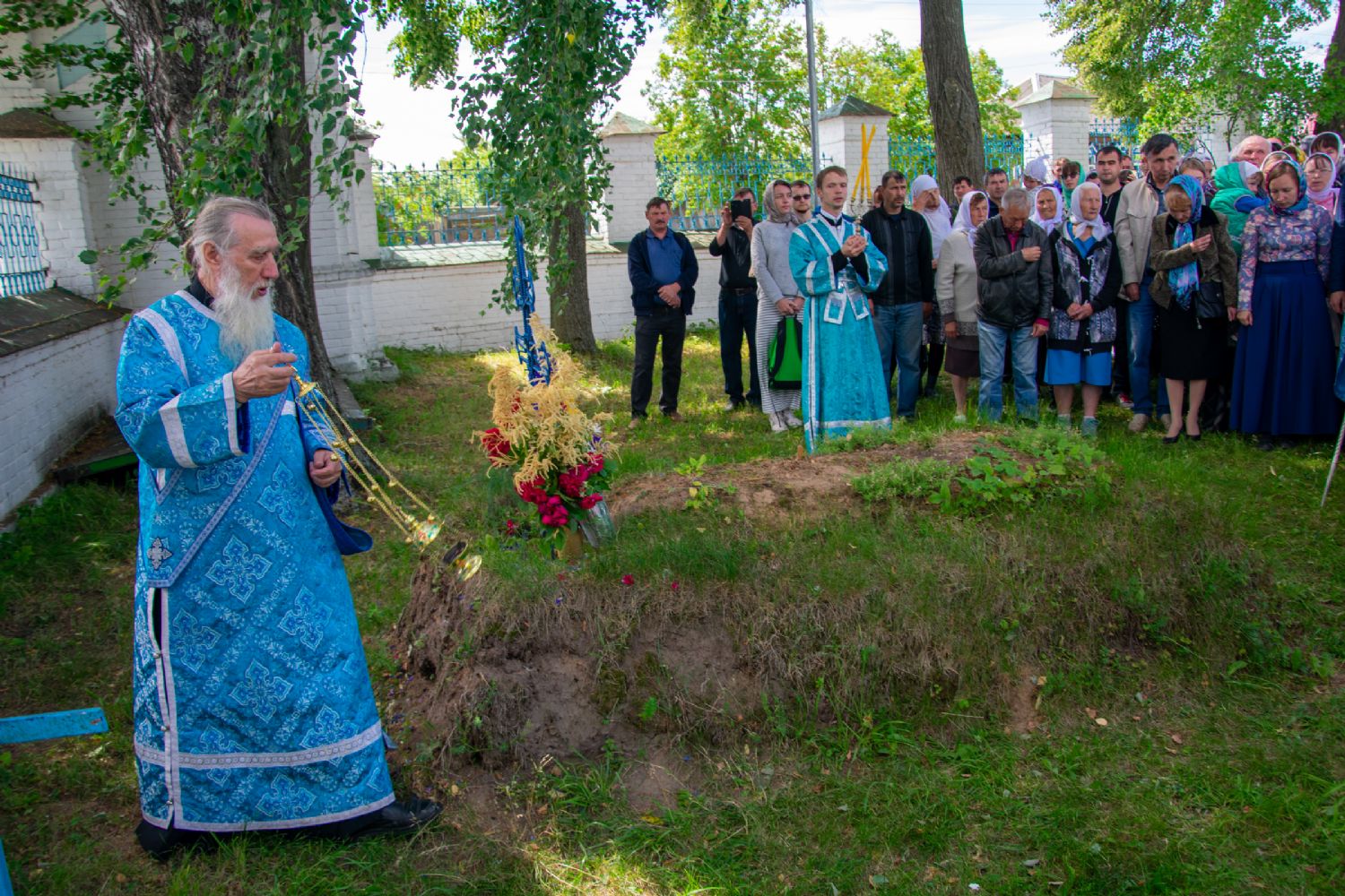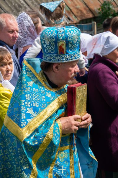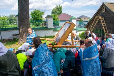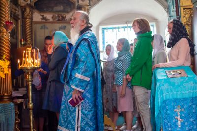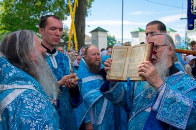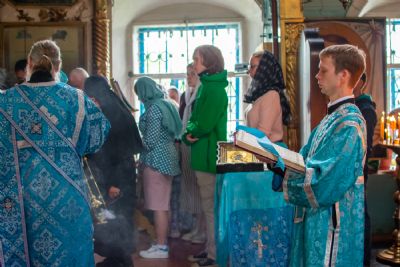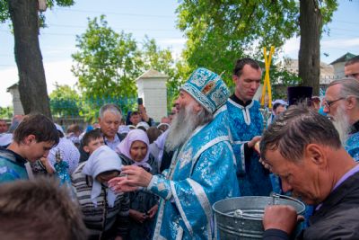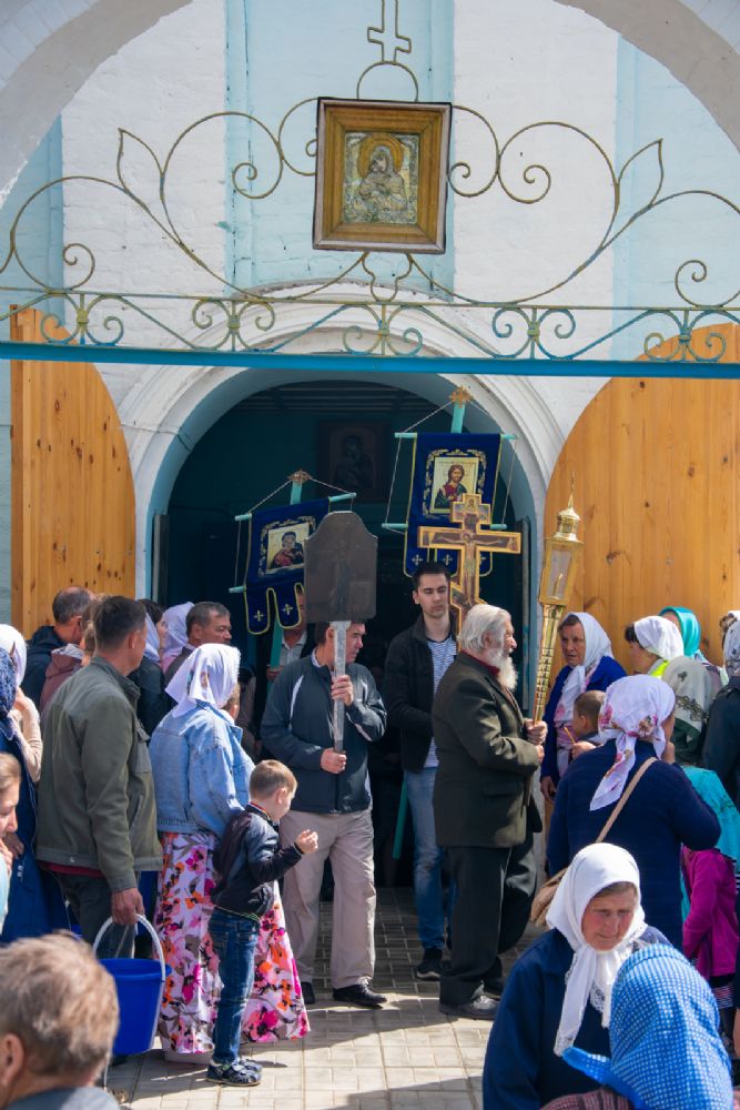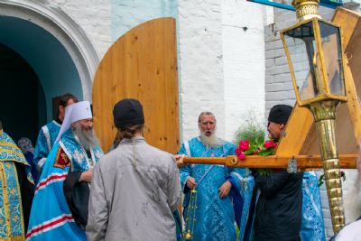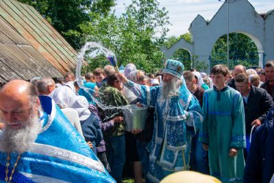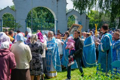 После Литургии был совершен молебен с крестным ходом вокруг храма с кроплением святой водой и чтением Евангелия.