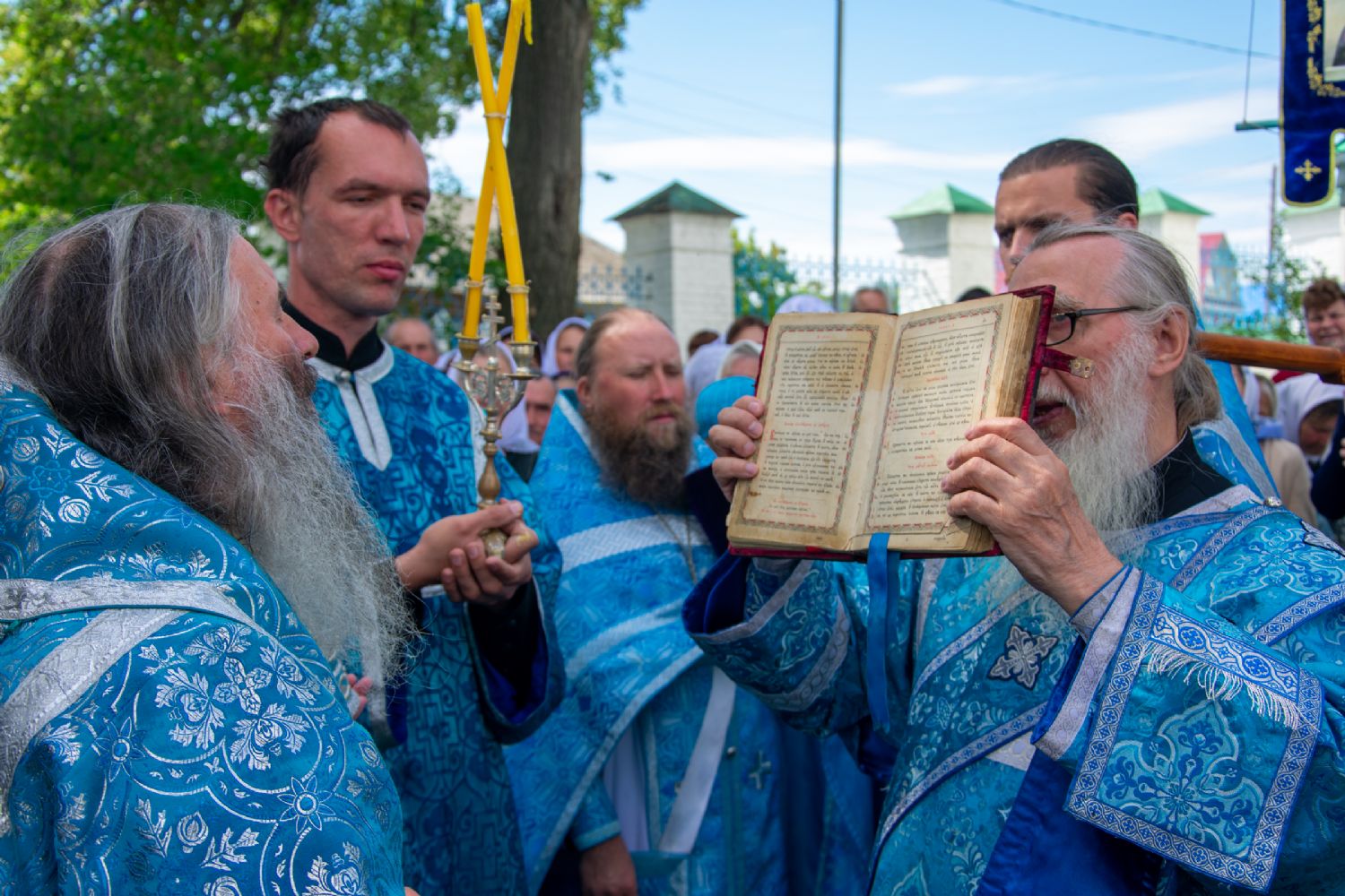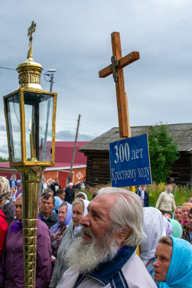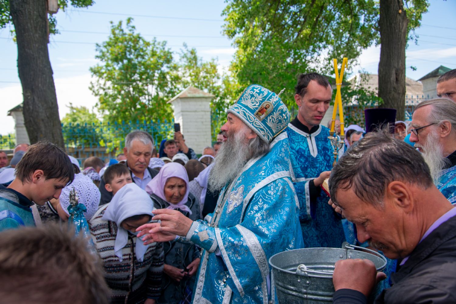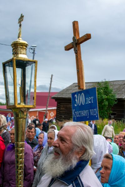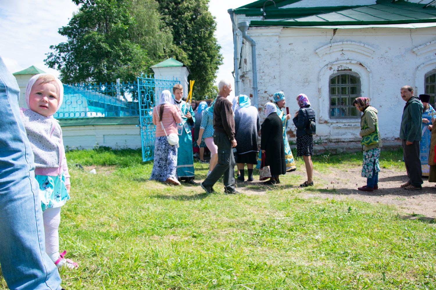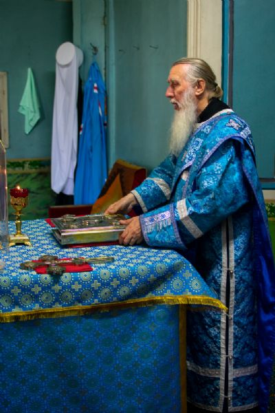 После Литургии был совершен молебен с крестным ходом вокруг храма с кроплением святой водой и чтением Евангелия.
