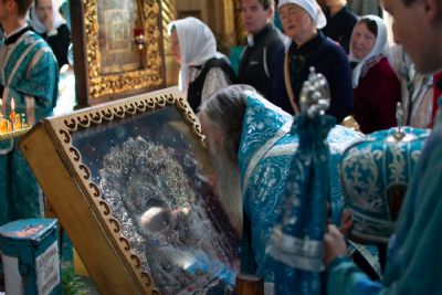 После Всенощного бдения митрополит Иоанн обратился с проповедью к собравшимся. «Пресвятая Богородица являет на протяжении многих столетий свою благодатную помощь, – подчеркнул Владыка после пения величания перед Владимирской иконой Пресвятой Богородицы. – Она принимает всякого входящего в Ее храм. Видимое знамение присутствия Царицы Небесной на сем месте — Ее чудотворный образ. В этом году уже 300 лет он износится крестным ходом, освящая нашу землю и пробуждая нашу совесть. Если мы не хотим прийти к Ней, Она Сама к нам приходит.