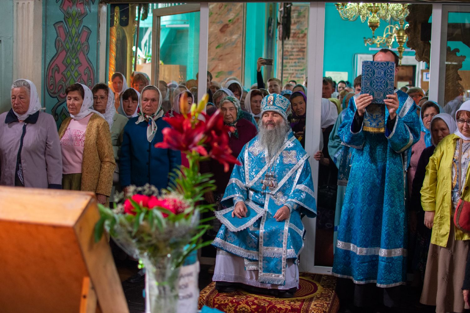5 июня вечером после встречи Владимирской иконы Пресвятой Богородицы митрополит Йошкар-Олинский и Марийский Иоанн возглавил Всенощное Бдение в храме Владимирской иконы Богородицы с. Владимирское.