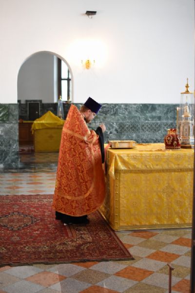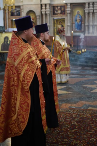 6 июля за Всенощным бдением в кафедральном соборе Благовещения Пресвятой Богородицы владыке сослужили секретарь Йошкар-Олинского епархиального управления иеромонах Серафим (Пасанаев), ключарь собора протоиерей Сергий Поглазов, клирики иереи Никифор Захаров и Артемий Промович, диакон Игорь Коваль и клирик храма Рождества Пресвятой Богородицы с. Семеновка протодиакон Михаил Козловский. Песнопения исполнял детско-юношеский хор «Благовест» под руководством регента Татьяны Черновой.