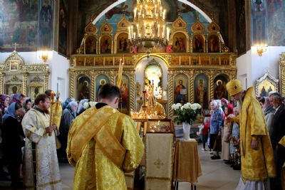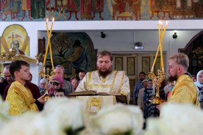 Его Преосвященству сослужило духовенство кафедрального собора.