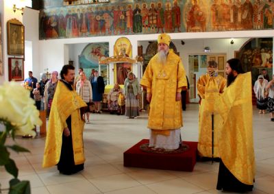 По окончании Литургии в центре храма было совершено славление святому пророку, Предтече и Крестителю Господню Иоанну, а затем владыка с амвона обратился к верующим с архипастырским словом о рождении, жизни и проповеди Иоанна Предтечи, которая была настоящим чудом – «он один из величайших, рожденных между нами на земле».