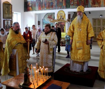 Архипастырю сослужили клирики собора: протоиерей Виталий Михеев, иерей Сергий Першаков, диакон Иоанн Захаров.