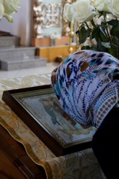 «…Удивительное житие Петра и Февронии, которые прожив долгую и счастливую жизнь, и в конце своей жизни добровольно расставшись, разошлись по монастырям: Петр жил в мужском монастыре, а Феврония - в женском, - продолжал проповедь владыка Феофан. - И когда приблизился час кончины Петра, то он написал Февронии письмо с просьбой помолиться о его душе. Феврония ответила Петру, чтобы он не уходил раньше неё и что ей сейчас нельзя отойти в вечность, т.к. она вышивает Плащаницу. И когда она завершила эту работу, то Господь призвал их обоих в один день и в один час, в 1228году. Тем самым Господь показывает нам, какие светлые и глубокие чувства могут связывать души человеческие. Действительно, любовь Христова жила в их сердцах. Они отошли ко Господу в один день, ибо жили на земле словно «одно тело - одна душа.