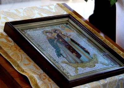 По окончании Литругии Его Преосвященство совершил молитву и славление святым Петру и Февронии.