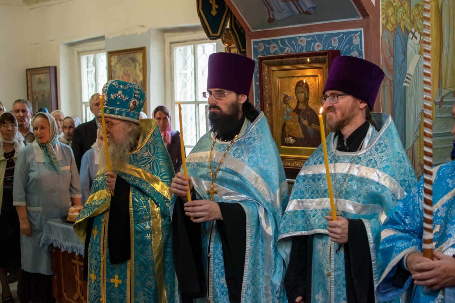 По окончании Литургии был отслужен молебен с крестным ходом вокруг храма, кроплением святой водой и чтением Евангелия. Владыка обратился к собравшимся со словами о милостях Богоматери. Затем всем была предложена трапеза и дети воскресной школы исполнили стихи и песни.