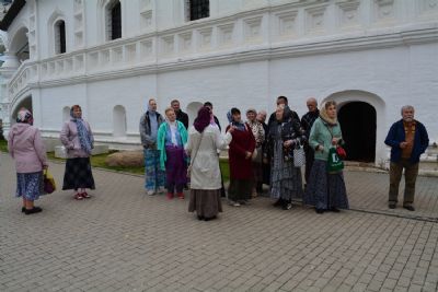 Второй день нашего паломничества начался с переезда в Кострому. Как и любой старинный русский город, Кострома славится своими церквями. С волнением мы прибыли в Свято-Троицкий Ипатьевский мужской епархиальный монастырь, «колыбель династии Романовых». Основан монастырь около 1330 года татарским мурзой Четом, принявшим в крещении имя Захария. Именно в этом монастыре в 1613 году был призван на царство первый царь из рода Романовых – Михаил Федорович. Мы приняли участие в Литургии, причастились, приложились к святыням монастыря – к чудотворной Тихвинской иконе Божией Матери, частице мощей священномученика Ипатия, частицам гробов Николая Чудотворца и Матроны Московской. На территории монастыря более 10 исторических построек, каждая из которых заслуживает отдельного внимания. Великолепный Троицкий собор 17 века – визитная карточка Ипатьевского монастыря. Его пять золоченых чешуйчатых главок и изумрудный ажурный шатер колокольни видны за несколько километров. Парадное крыльцо с восьмигранным шатром, обилие архитектурных украшений, богатый иконостас середины 18 века в стиле барокко – все это впечатляет прибывших в монастырь. Палаты бояр Романовых, или Царские чертоги, самое знаменитое здание монастыря. Непременно стоит увидеть и нежно-бирюзовые екатерининские ворота в стиле барокко, возведенные в 1767 году к приезду в Кострому императрицы Екатерины II, побыть на службе в красивейшей церкви Хрисанфа и Дарии.