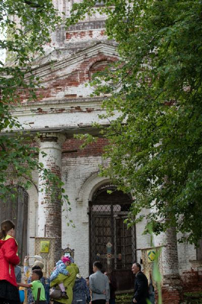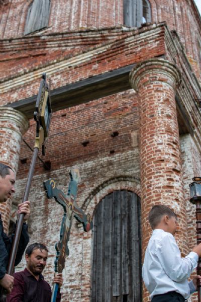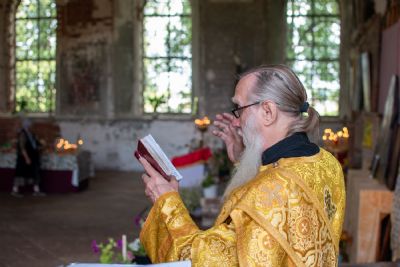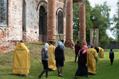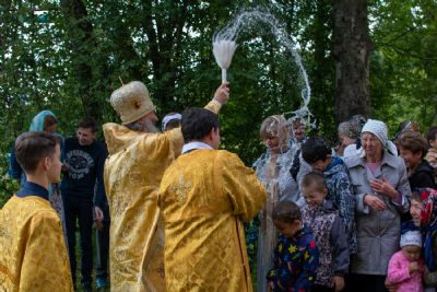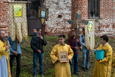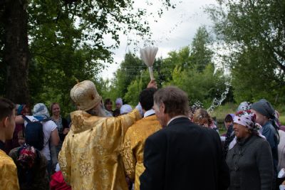 После Литургии прошел крестный ход вокруг храма с кроплением святой водой и чтением Евангелия.