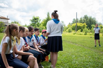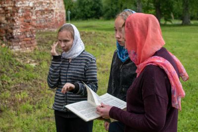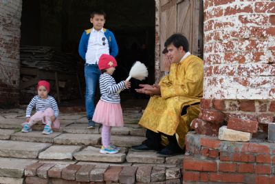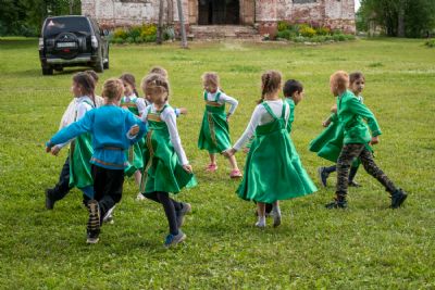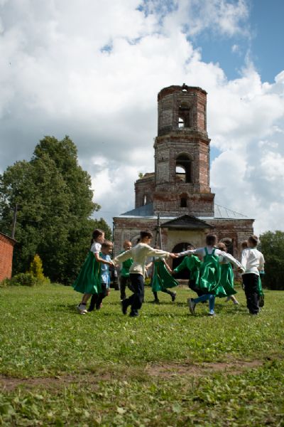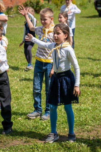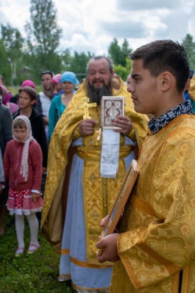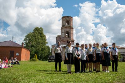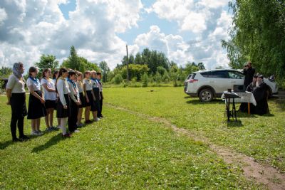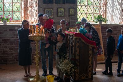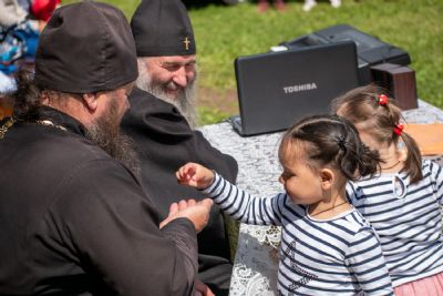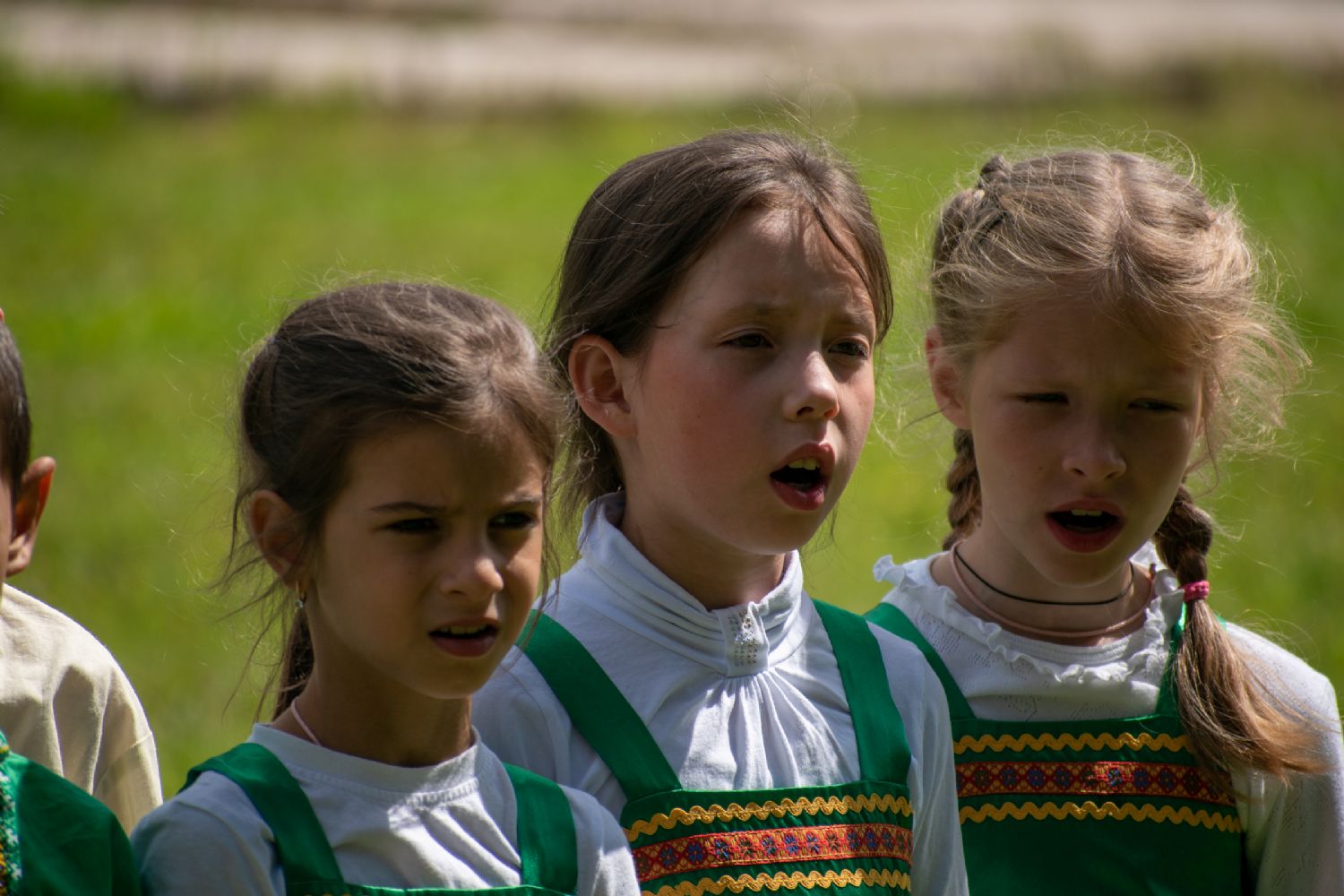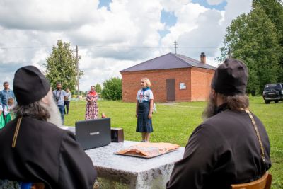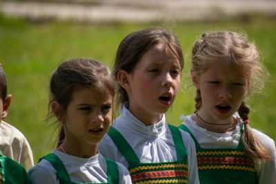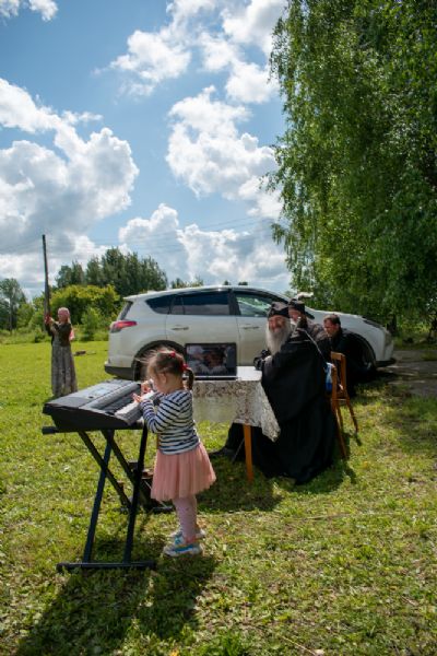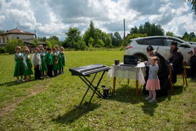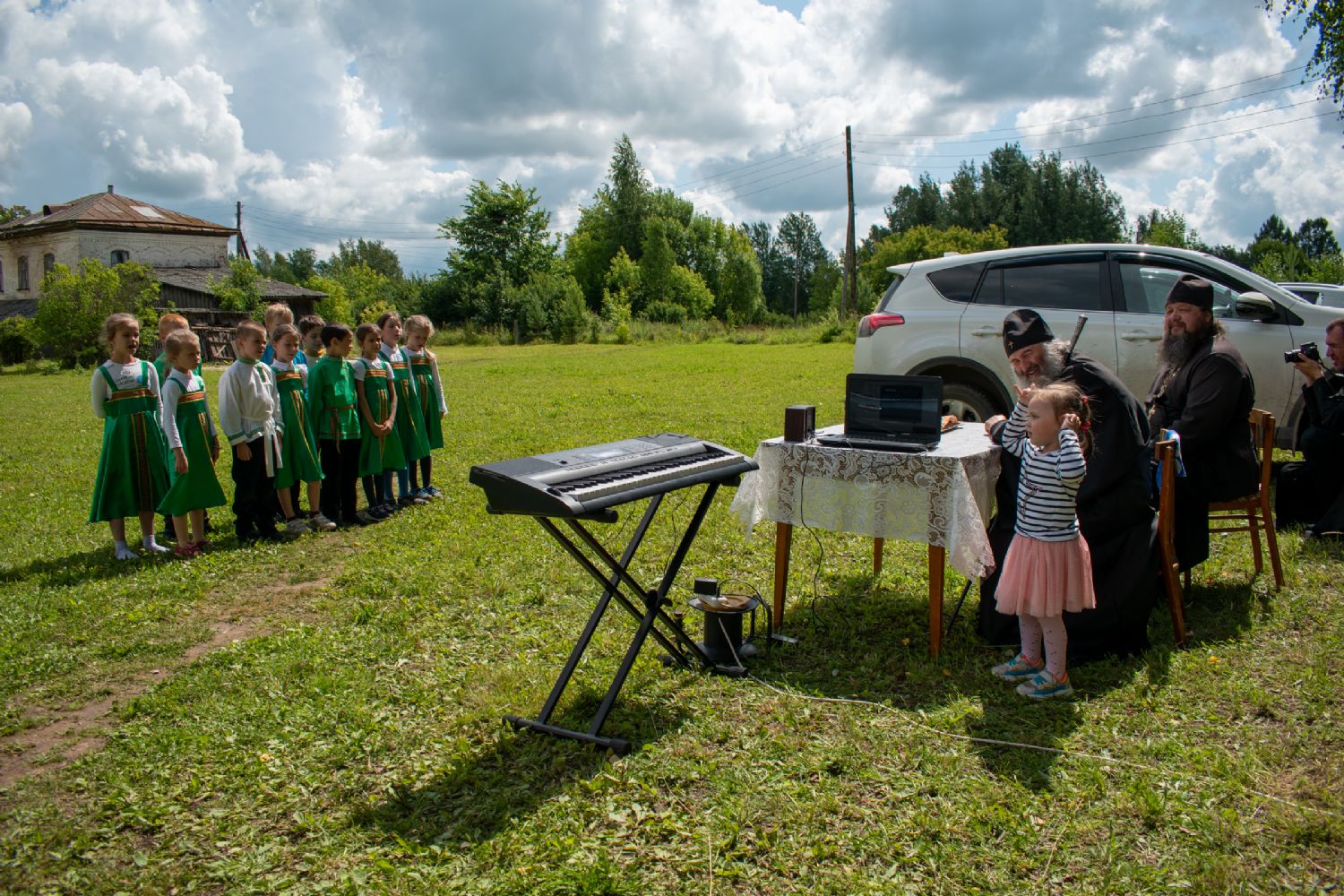 За богослужением молились дети из детского лагеря, расположенного неподалеку от села Орша. После богослужения они показали всем гостям концерт.