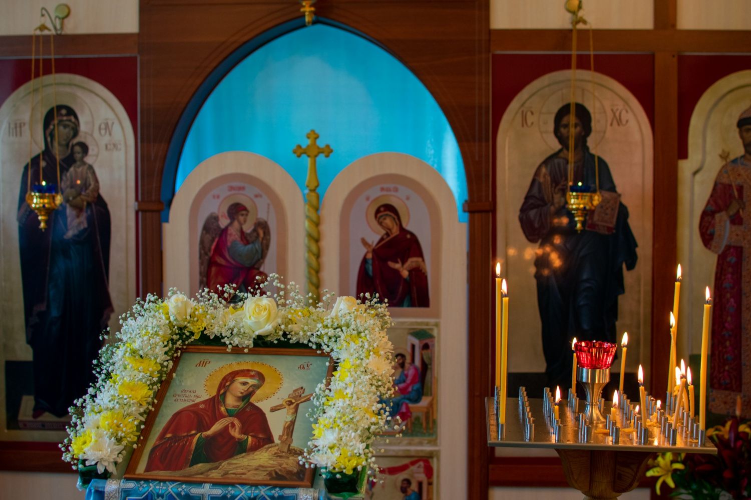 После Богослужения митрополит Иоанн поздравил прихожан с престольным праздником и объяснил смысл изображенного на «Ахтырской» иконе Богородицы.