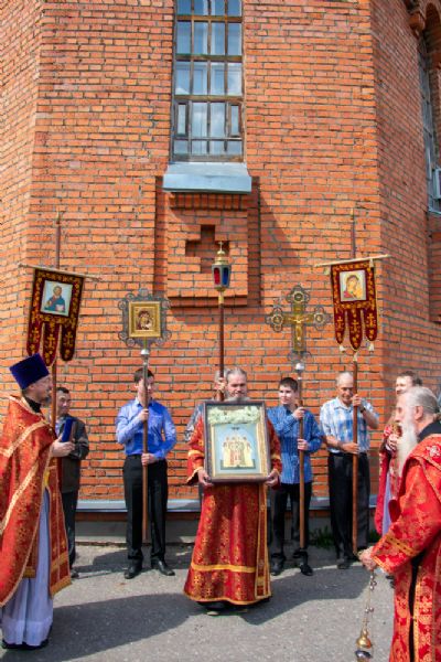 После Литургии прошел крестный ход с кроплением святой водой и чтением Евангелия.