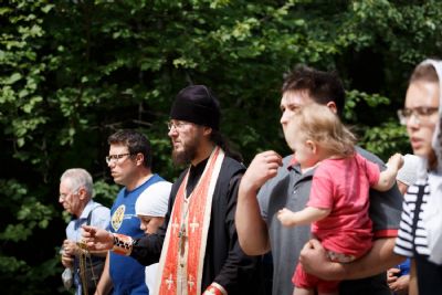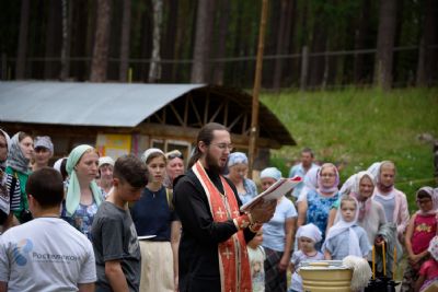 По прибытии к часовне крестоходцы ждали приезда митрополита Иоанна. Владыка совершил в часовне молебен Царским мученикам, а вечером – Всенощное бдение.