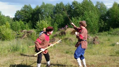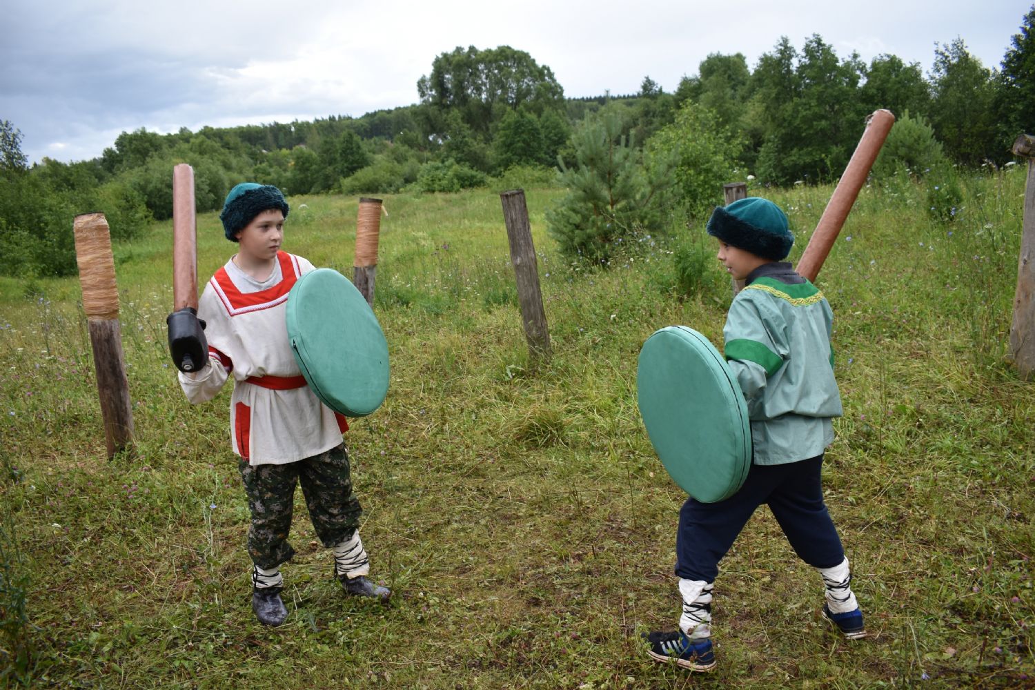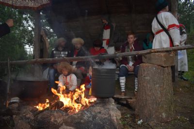 В воскресный день, после Божественной литургии, участники отправились на заставу, чтобы пройти богатырские испытания. Погода проверяла на прочность сильным дождем, который пережидали у костра.