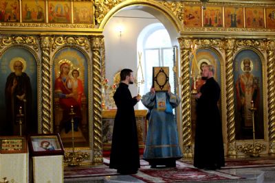 В молебном пении принимали участие клирики Никольского собора.
