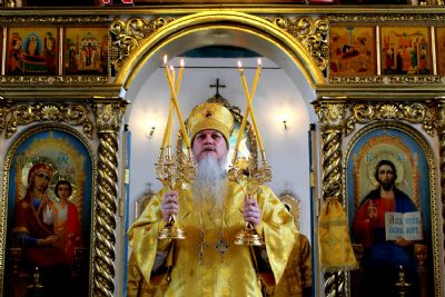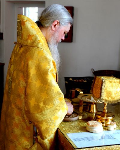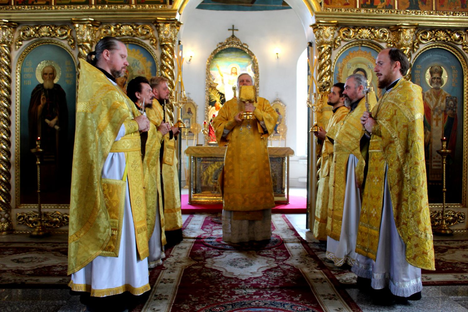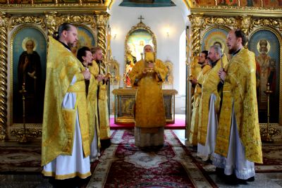 Его Преосвященству сослужили клирики собора: протоиерей Виталий Михеев, иерей Александр Усков, иерей Сергий Першаков, диакон Иоанн Захаров.