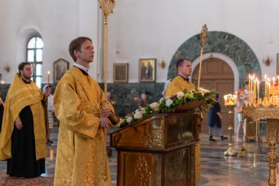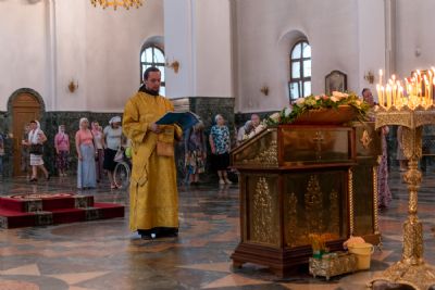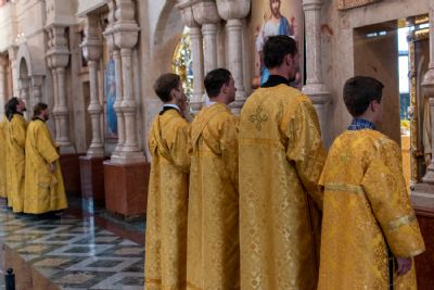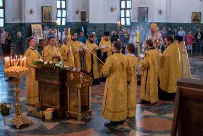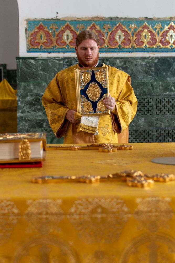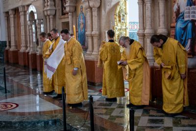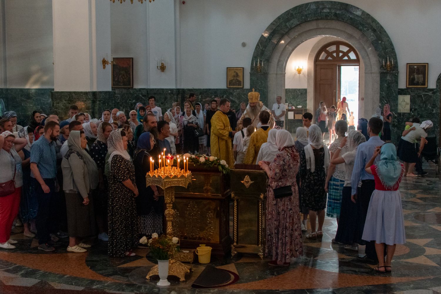 28 июня митрополит Иоанн возглавил Божественную литургию в Благовещенском соборе. Владыке сослужили клирик собора иереи Артемий Промович и клирик храма Рождества Пресвятой Богородицы с. Семеновка протодиакон Михаил Козловский. Песнопения исполнял детско-юношеский хор "Благовест" под руководством регента Татьяны Черновой. За богослужением помогали православные добровольцы.