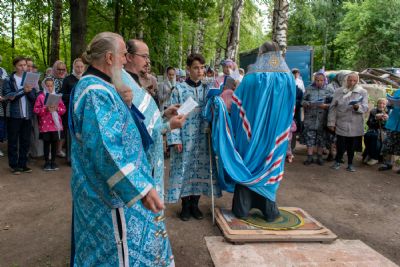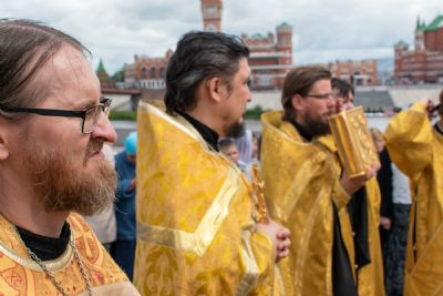 После Литургии был отслужен особый молебен на день крещения Руси и прошел крестный ход по набережной с кроплением святой водой и заупокойной литией у памятника патриарху Алексию.