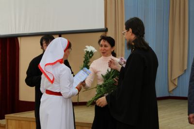 После концертной части фестиваля всех участников поздравили и пожелали дальнейших творческих успехов приглашенные гости, экскперты в области музыки, вокала, богословия и марийского языка: протоиерей Николай Чузаев, руководитель Комиссии Марийской митрополии по переводу Священного писания на марийский язык, Н.А. Федосеева, кандидат филологических наук, ведущий научный сотрудник МарНИИЯЛИ им. В.Васильева, член Союза писателей России, Э.Н. Гурьева, солистка Марийского академического театра оперы и балета им. Э.Сапаева, Ю.Ю. Цыкина, кандидат исторических наук, доцент, Заслуженный деятель искусств Республики Марий Эл и Л.С. Матросова, кандидат филологических наук, доцент, заведующая кафедрой марийского языка и литературы МарГУ.