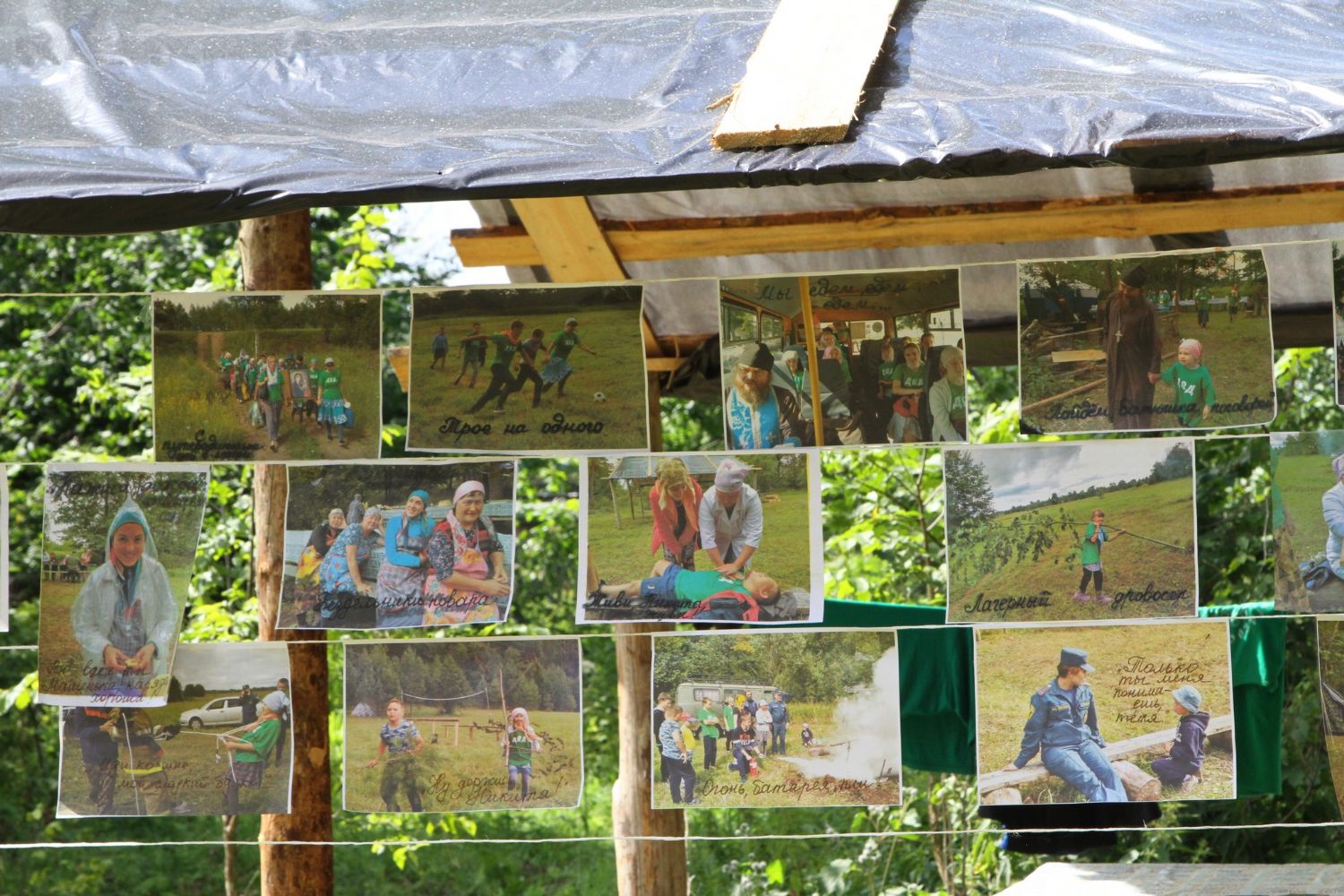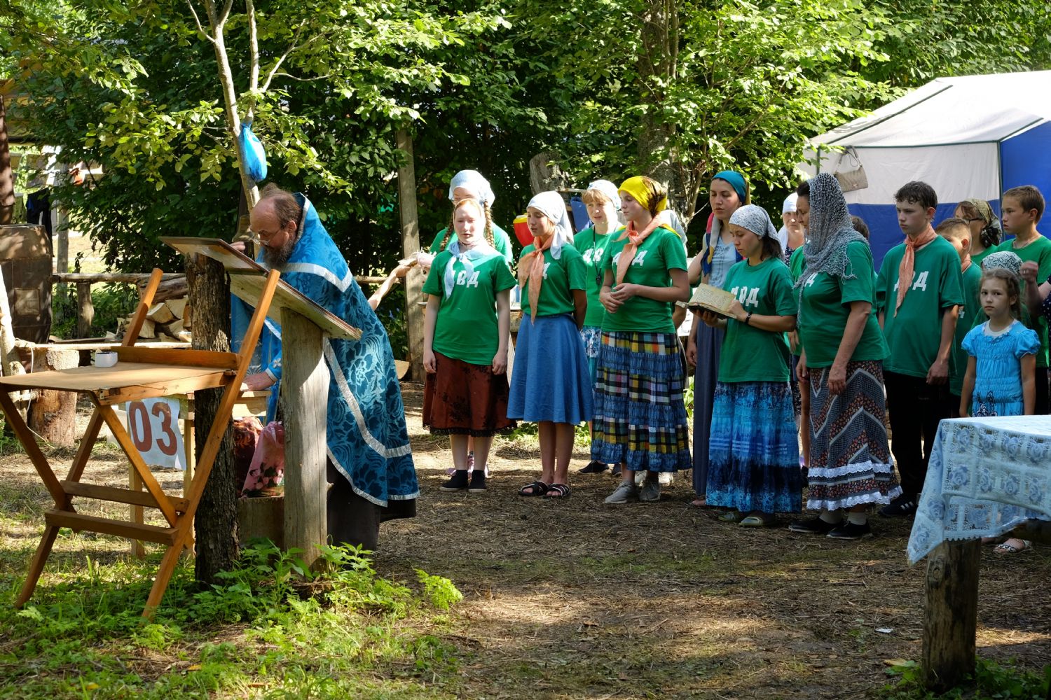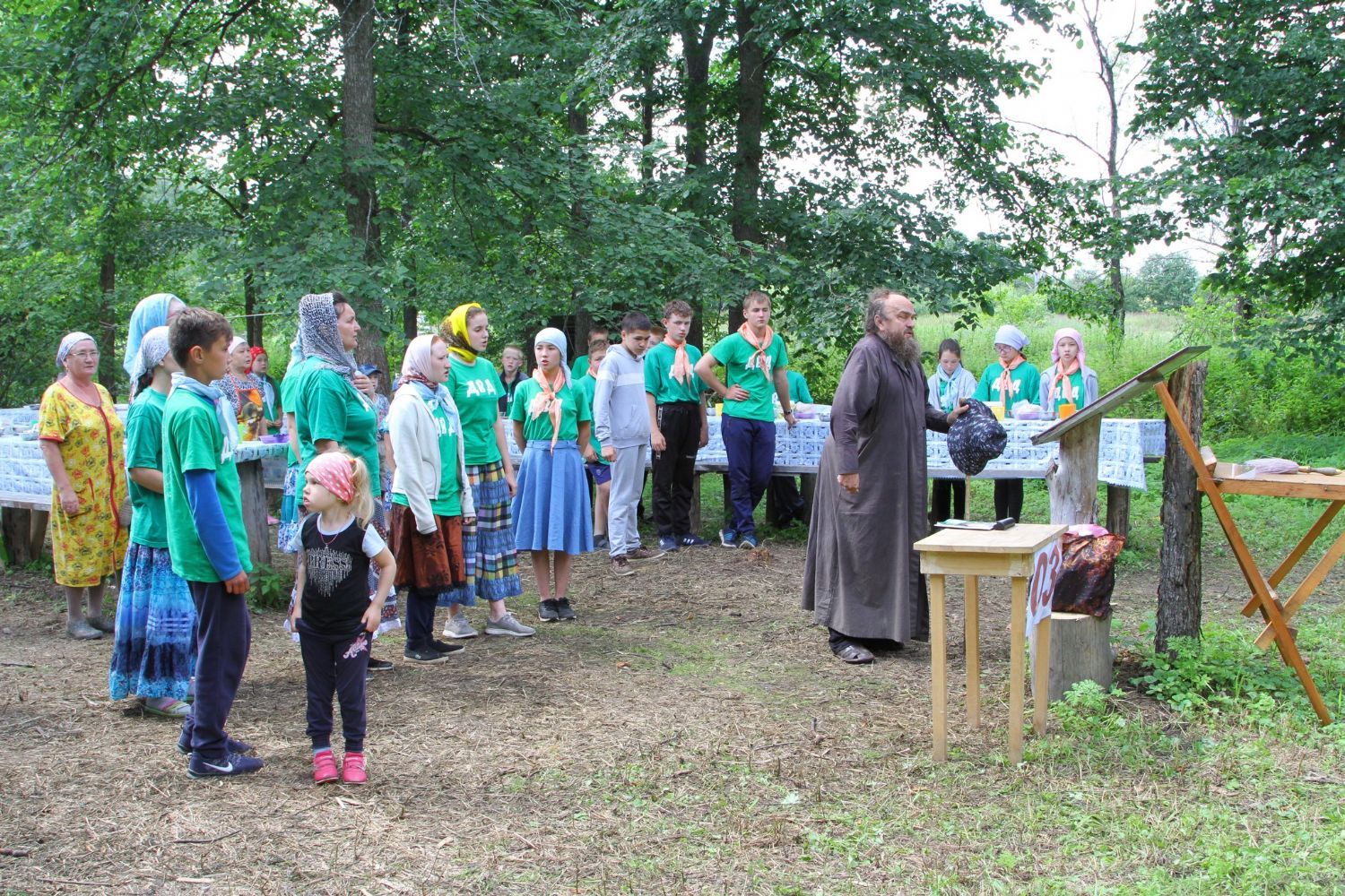 И, конечно же, самое главное, что помогает детям и объединяет их — это молитва. С молебна Пресвятой Богородице начался первый лагерный день. И, похоже, Матерь Божия вняла искренней детской молитве. По заезду в лагерь на небе - темные тучи, кажется, дождя не миновать. Такой печальный опыт уже был, когда из-за дождя пришлось свернуть лагерь и вернуться домой.