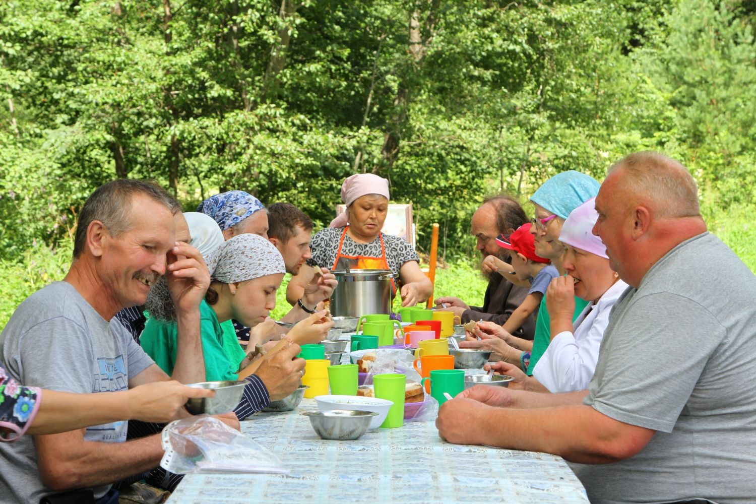 Поэтому на этот раз отец Николай тут же собрал всех на общую молитву. Молитва и взрослых, и детей была горяча и искренна. И после молебна темные грозовые тучи еще долго витали вокруг. В соседней деревне, меньше чем за километр от лагеря, прошумел ливень, а в лагере - лишь летний грибной дождичек. Дети ему даже обрадовались. Богородица явила Свою милость. Совершать молебен Пресвятой Богородице каждый день взяли за правило. Ну, а общая молитва перед и после еды, утреннее и вечернее правило – это уже закон православного детского лагеря.