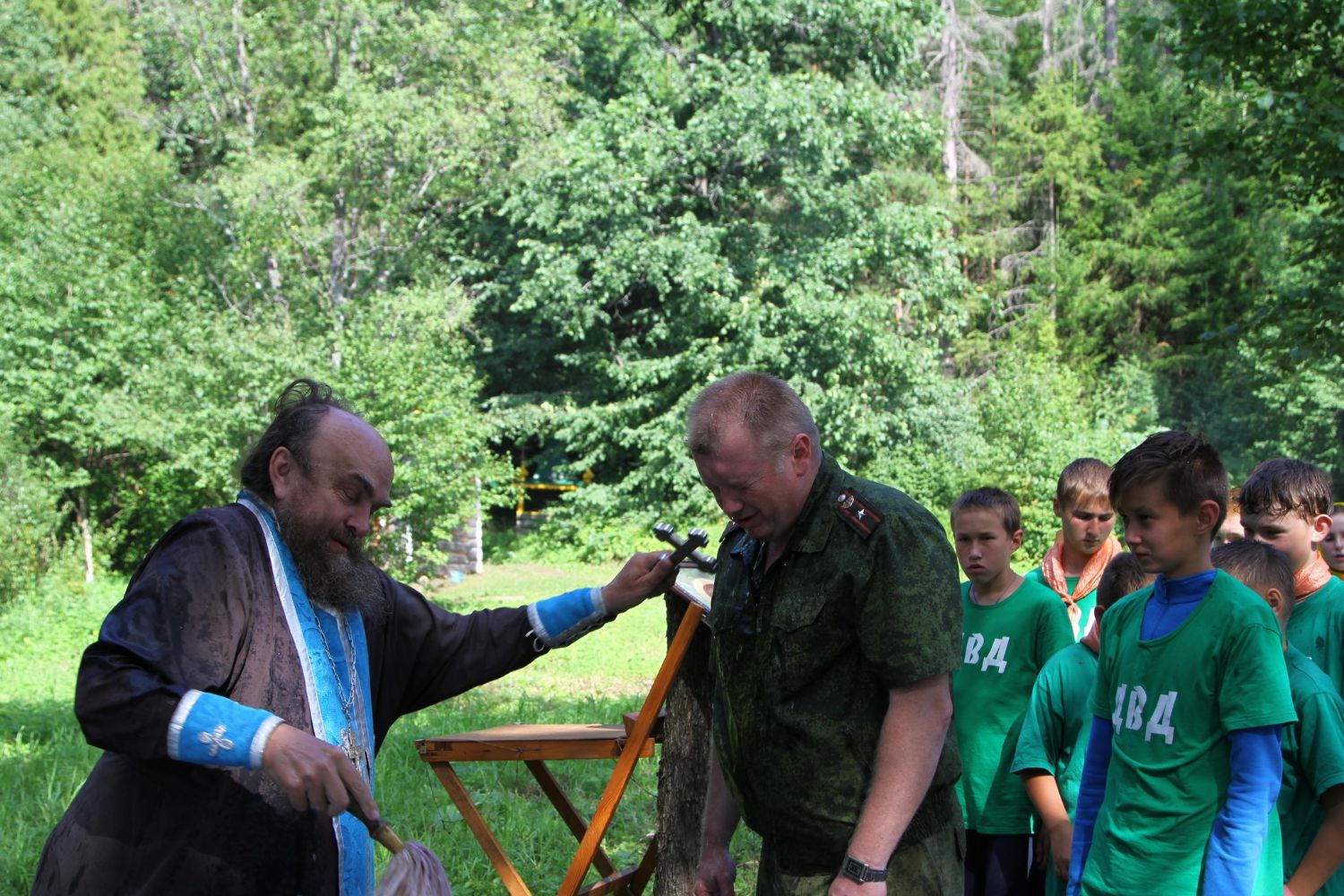 Лагерь назван военно-патриотическим не зря. Наряду с батюшкой, активными прихожанами храма и преподавателями воскресной школы с детьми занимаются сотрудники районного военного комиссариата, отделения МЧС и МВД! Это очень существенный момент в воспитании подрастающего поколения. Важно воспитать в детях чувство патриотизма и вложить в них глубинный смысл этого слова. Быть физически развитым, уметь постоять за себя и помочь близким в трудной жизненной ситуации. Этому всему, дополняя друг друга, учат и отец Николай и сотрудники спецслужб — активные прихожане храма Царственных страстотерпцев.