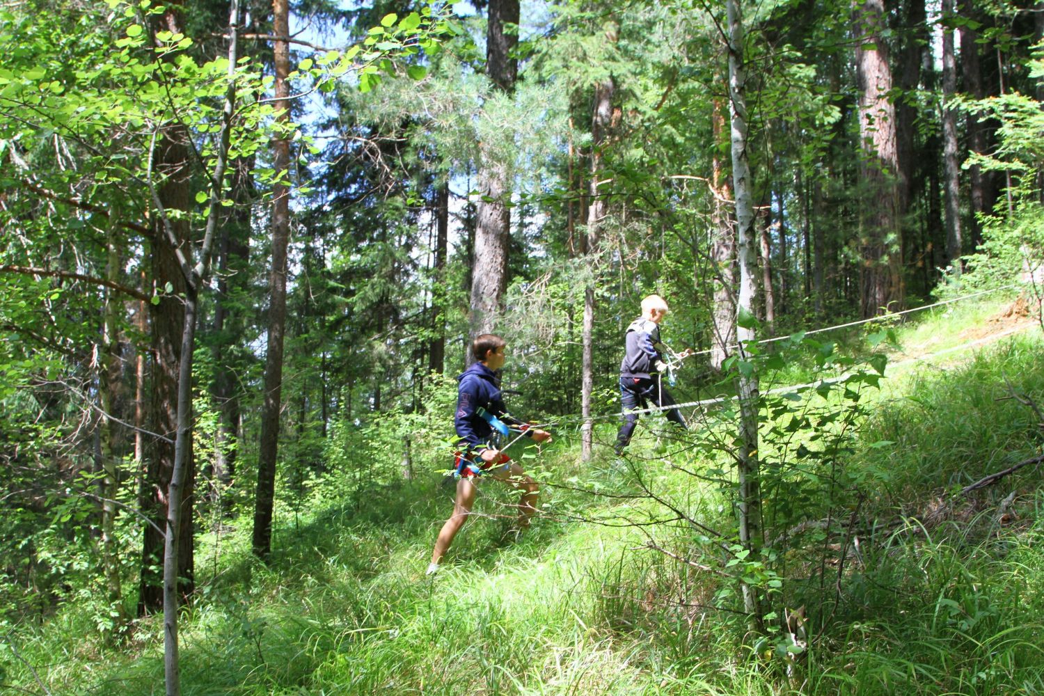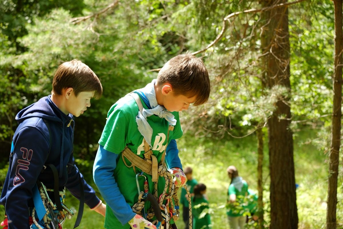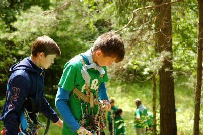 Еще одно запоминающееся событие в жизни лагеря – это занятие с альпинистами. Ребята одевают альпинистское снаряжение и перебираются через глубокий ров.