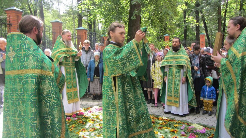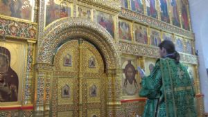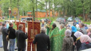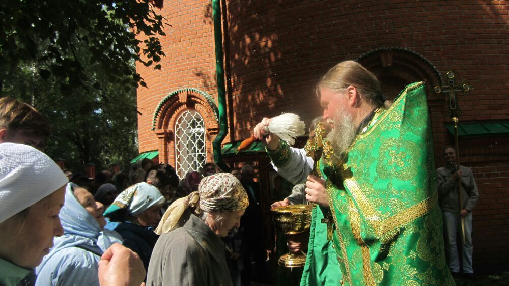 После литургии состоялся праздничный молебен и крестный ход вокруг храма с чтением Евангелия и кроплением святой водой.