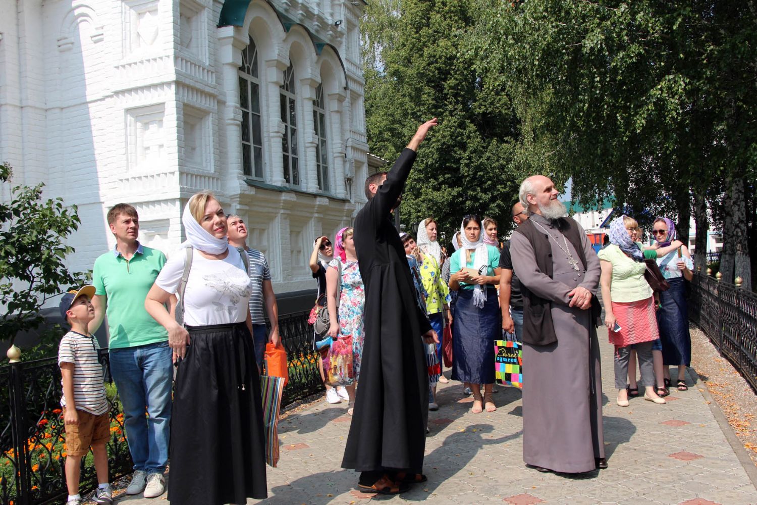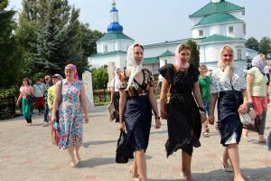 Гостей из Марий Эл в Раифе встретили тепло и радушно, послушник Алексий провел экскурсию и рассказал об истории становления обители, паломники приложились к чудотворной иконе Грузинской Божьей Матери, поклонились другим святыням собора, послушали песнопения братии.