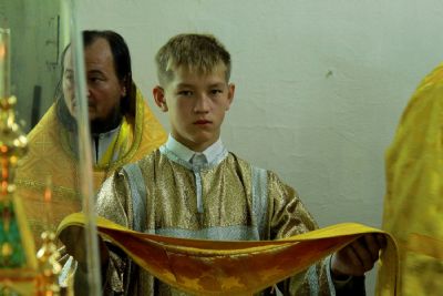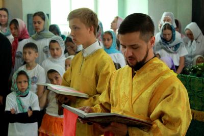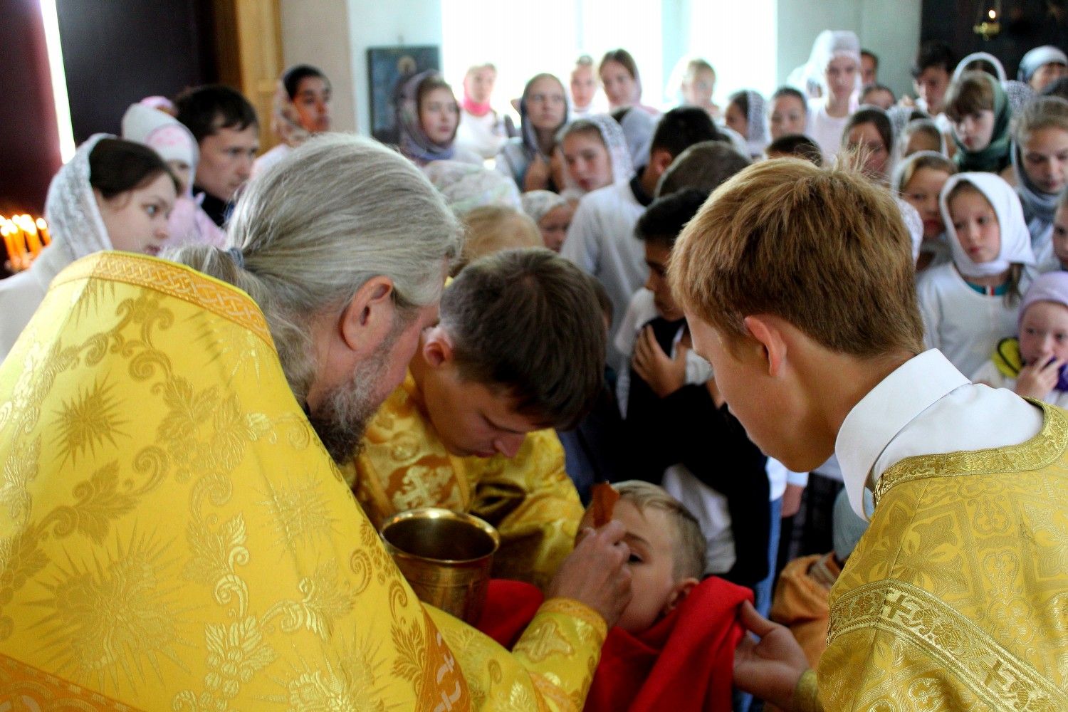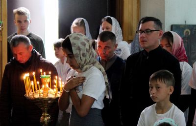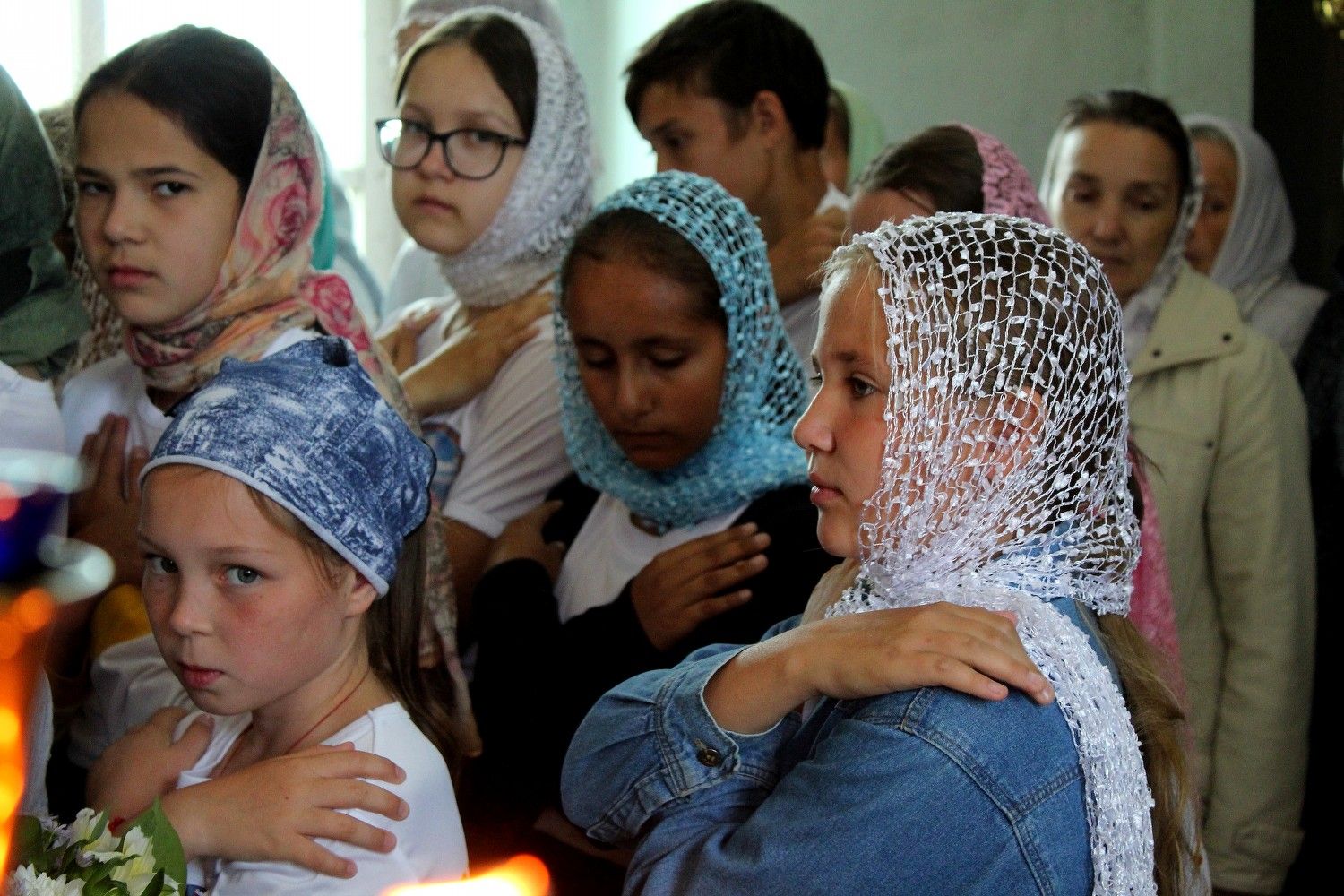 За богослужением молились дети из православного лагеря «Золотые купола».