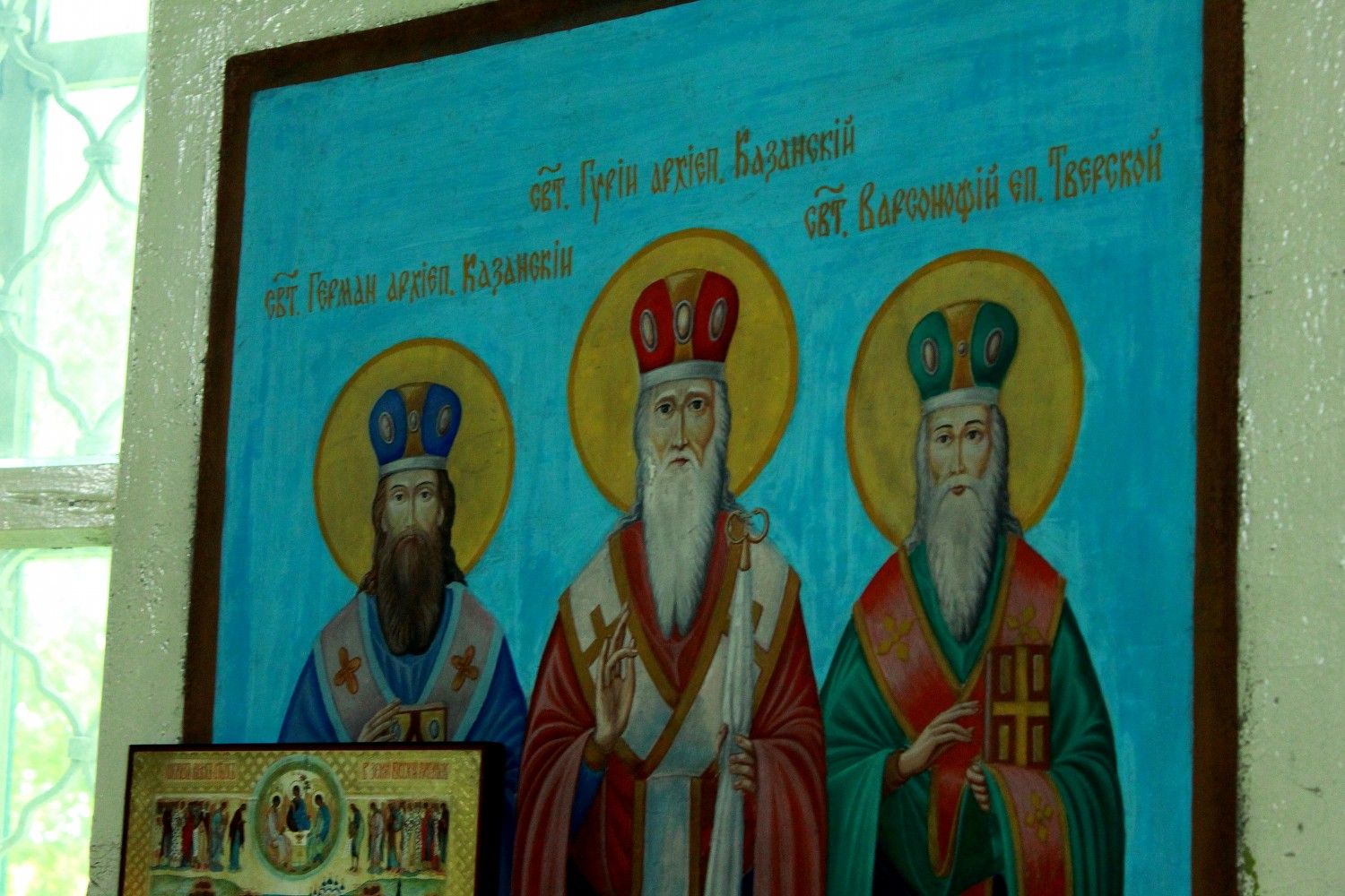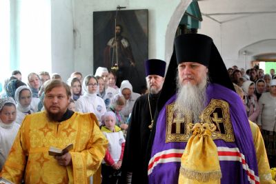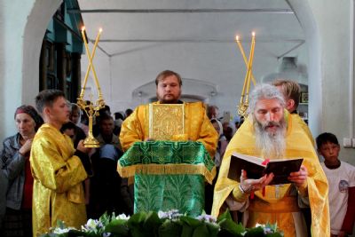 Его Преосвященству сослужили: протоиерей Николай Чузаев – настоятель храма, протоиерей Леонтий Очетов – настоятель храма Богоявления Господня с. Морки, диакон Иоанн Захаров – клирик Никольского кафедрального собора г. Волжска.