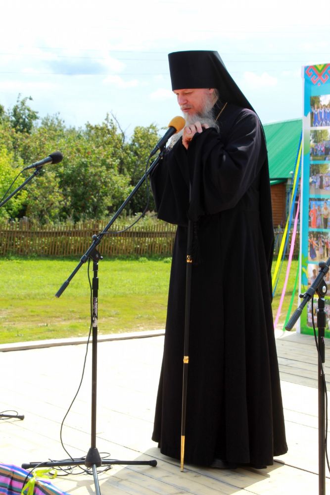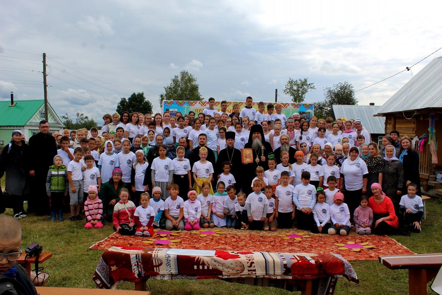 Ребята подготовили и показали гостям концерт, в ходе которого епископ Феофан, приветствуя собравшихся, подчеркнул: «Сегодня сердечно радуюсь вместе со всеми вами тому, что возможно нам собраться вместе около храма дружной христианской семьей. Мы можем вместе помолиться ко Господу и Его Пречистой Матери, всем святым и пожелать друг другу милости Божией. Всем желаю душевного мира, благодарю всех тех, кто организовал этот праздник, возможность для детей пребывать здесь в течение десяти дней, чтобы во время этого пребывания было молитвенное общение у них в храме за богослужением, читая утренние и вечерние молитвы, молясь друг о друге.