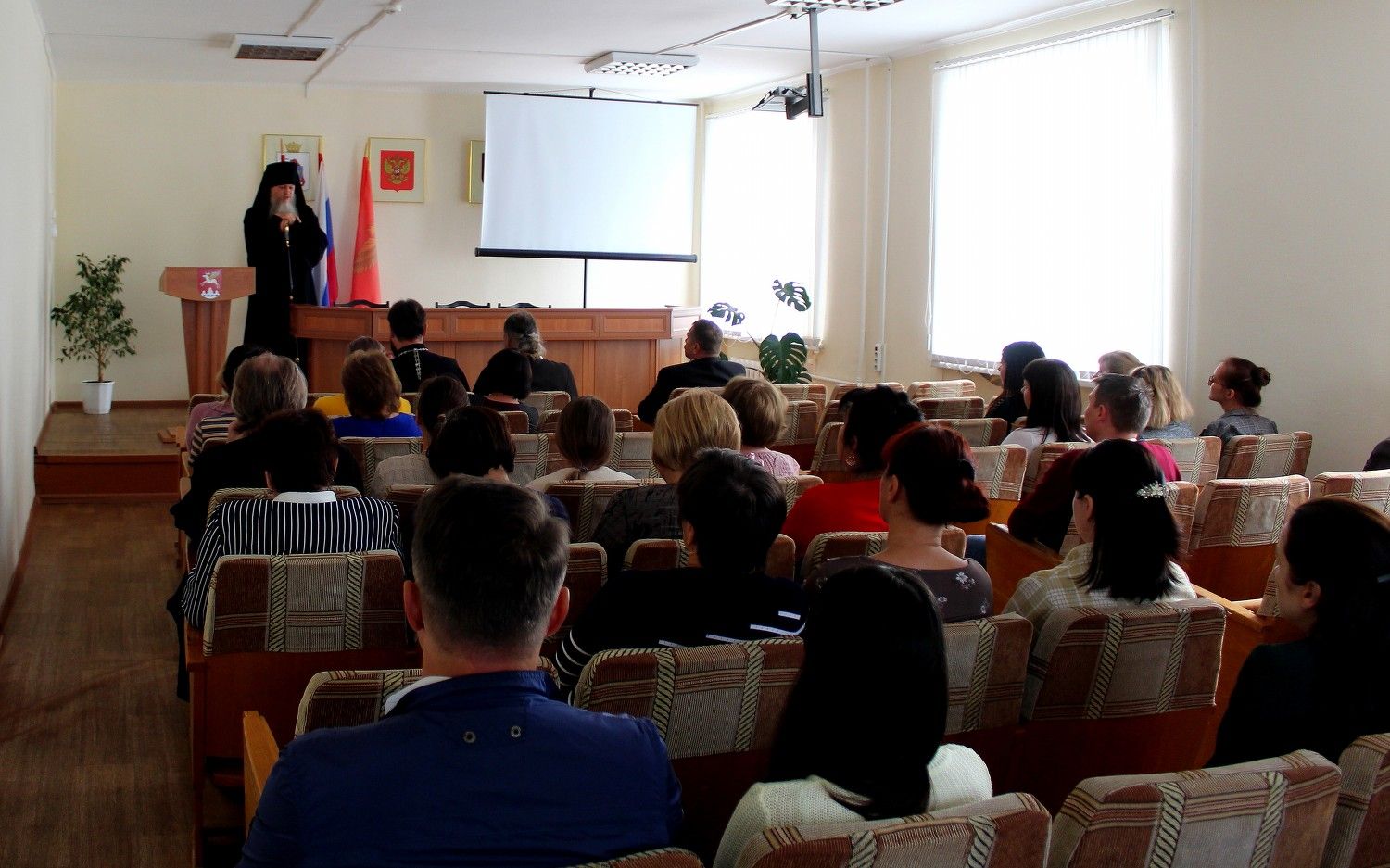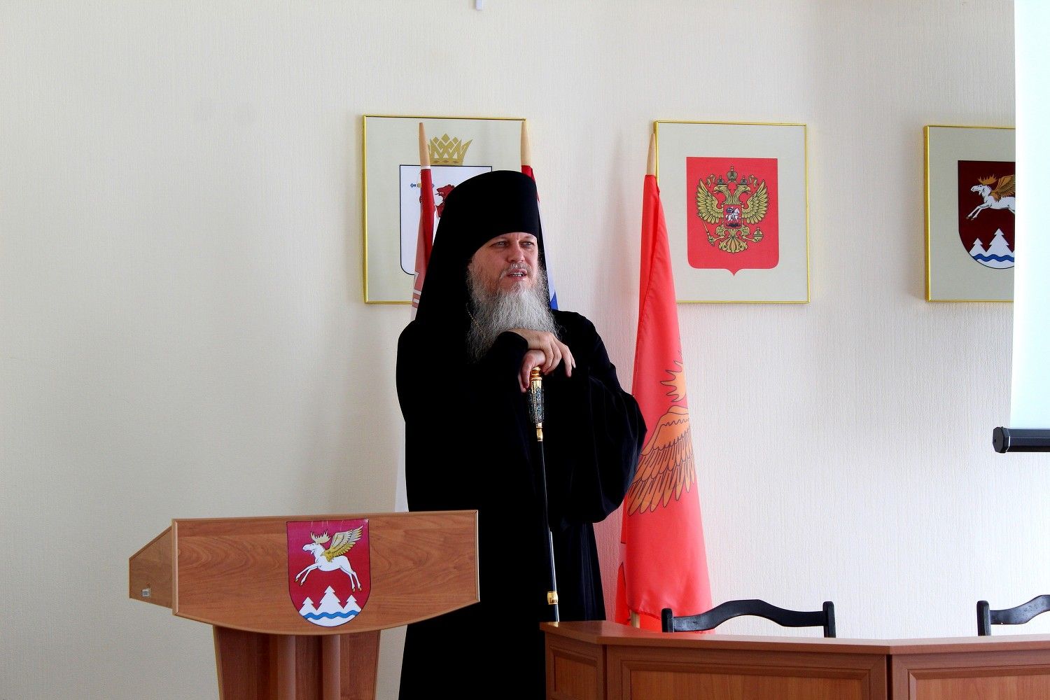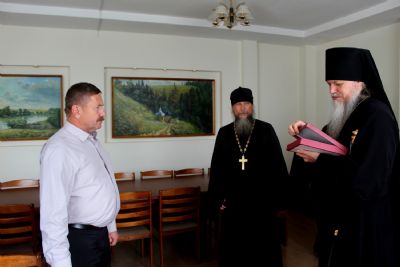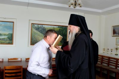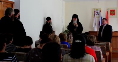Далее состоялась встреча епископа Волжского и Сернурского Феофана с работниками администрации Куженерского муниципального района. Владыка поведал житие преподобного Серафима, рассказал о необходимости ведения церковной жизни и ответил на вопросы собравшихся в зале людей. Главе администрации Сергею Ивановичу Михееву епископ Феофан вручил на молитвенную память икону святого преподобного Серафима Саровского.