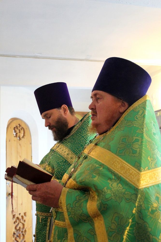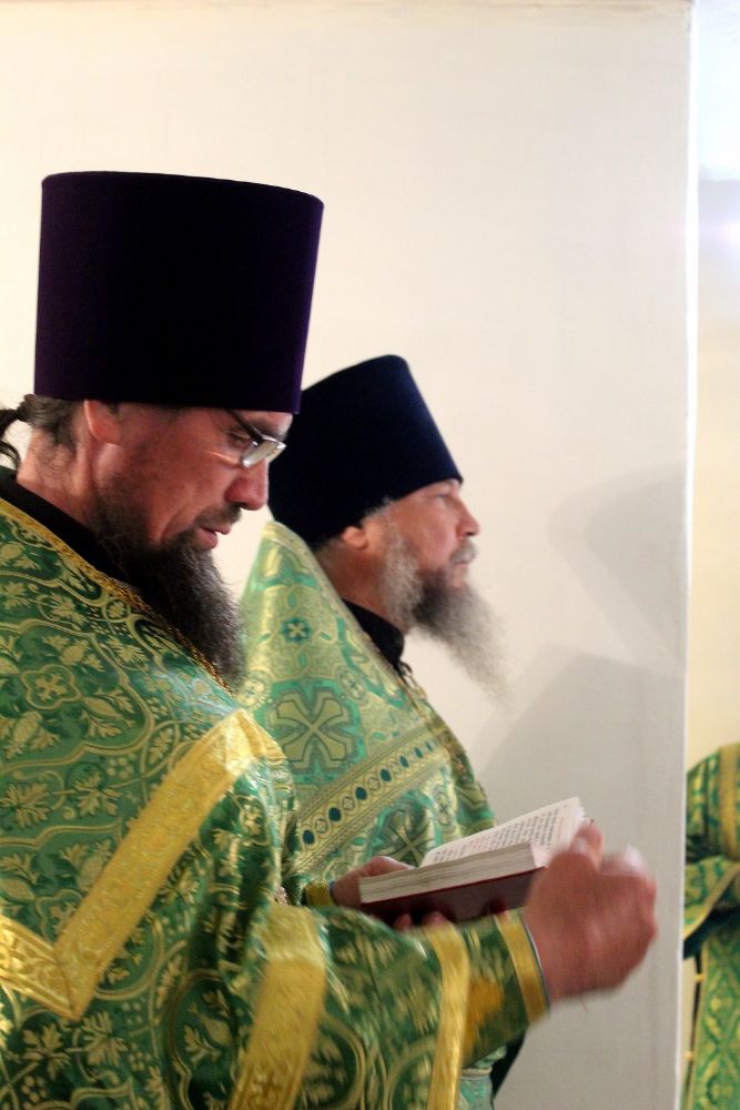 Его Преосвященству сослужили: протоиерей Вячеслав Михайлов - настоятель храма святителя Николая Мирликийского п. Куженер; протоиерей Владимир Власов - настоятель храма Архангела Михаила п. Сернур; протоиерей Александр Милютин - настоятель храма святителя Николая Мирликийского с. Косолапово; иерей Лев Федотов - настоятель храма Пресвятой Троицы с. Мамсинер, диакон Иоанн Захаров - клирик Никольского собора г. Волжска.
