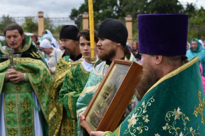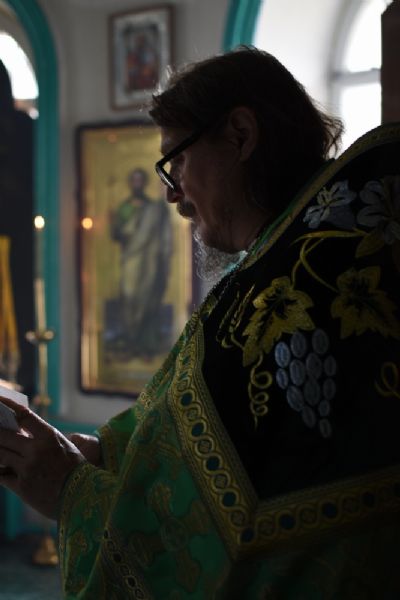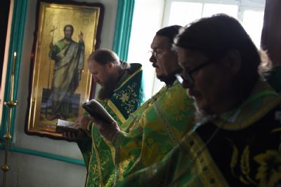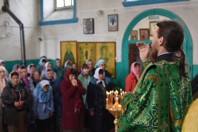 Владыке сослужили настоятель храма протоиерей Виктор Соловьев и священники Горномарийского благочиния. Богослужение началось торжественной встречей митрополита Иоанна. За богослужением пел хор под руководством регента Ангелины Соловьевой. После литургии прошел крестный ход с чтением Евангелия и кроплением святой водой.