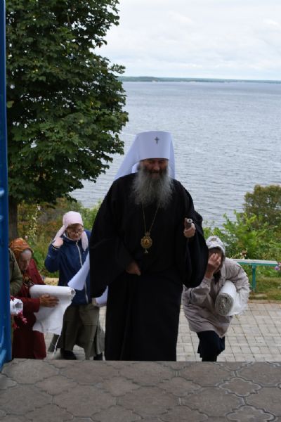 После Богослужения митрополит Иоанн обратился с проповедью к собравшимся. Владыка рассказал о монашеском и просветительском подвиге преподобного Макария и его братии, о просвещении ими татар и мари.