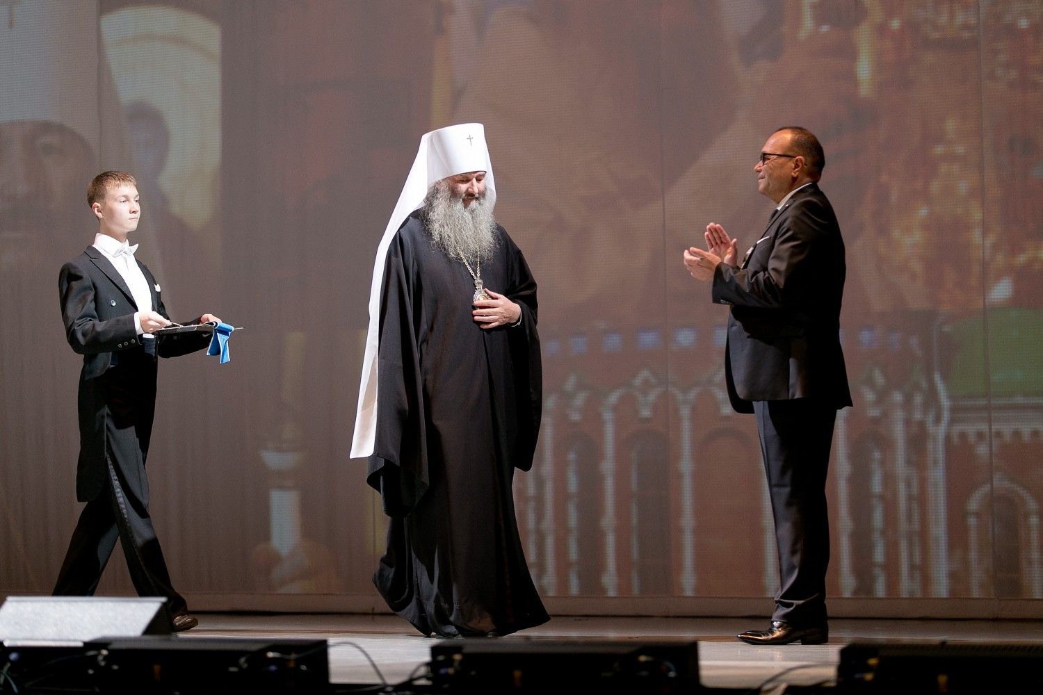 Затем были награждены йошкаролинцы, трудящиеся во благо столицы. Высокое звание почетного гражданина города Йошкар-Олы присвоено главе Марийской митрополии, митрополиту Йошкар-Олинскому и Марийскому Иоанну.