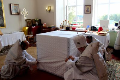 После освящения престола в честь преподобного Сергия Радонежского владыка Феофан возглавил Божественную литургию.
