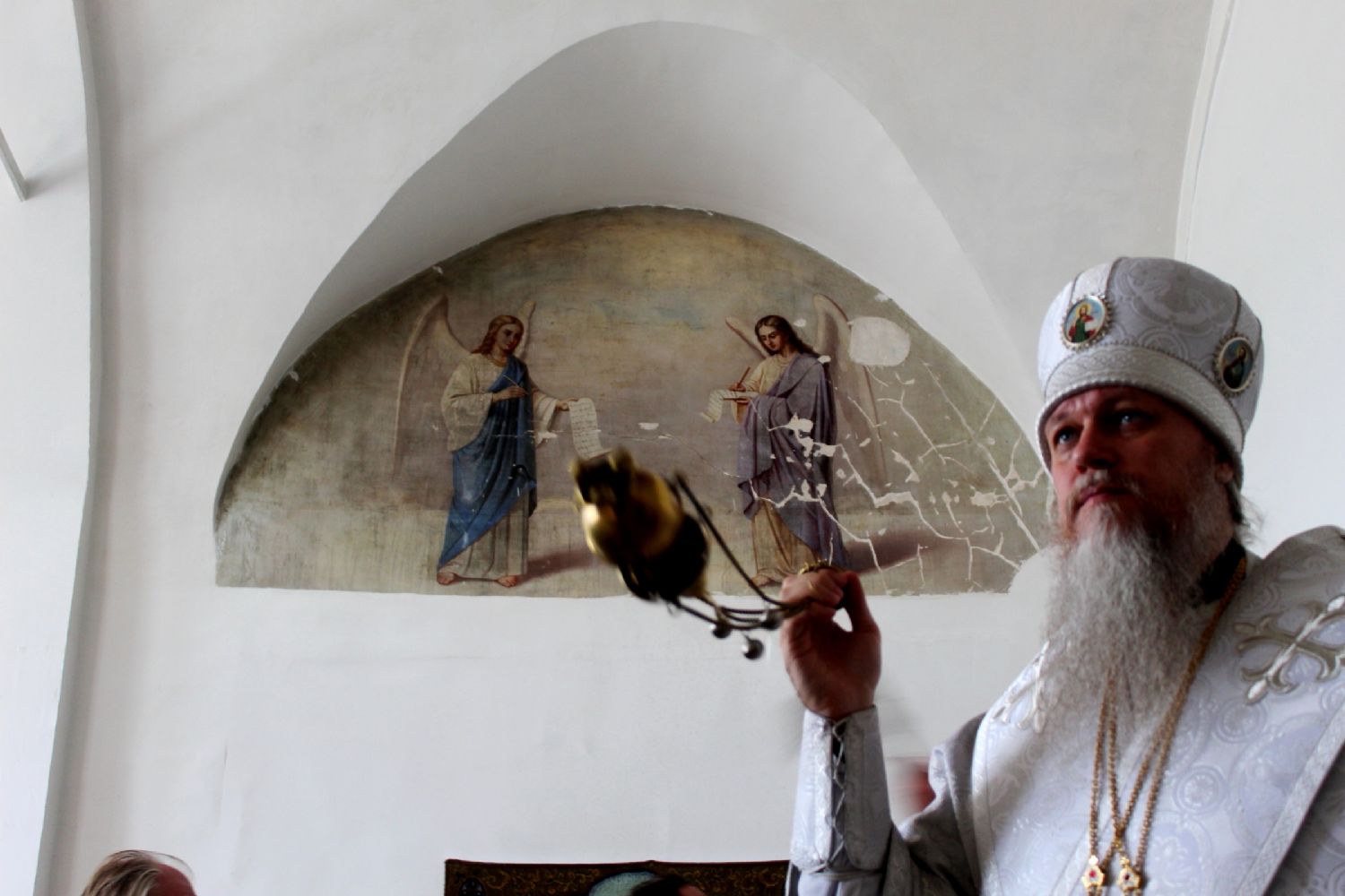 «Хотелось бы поблагодарить и отца-благочинного протоиерея Вячеслава и отца-настоятеля протоиерея Александра за то, что хоть храм еще не восстановлен, но здесь совершаются богослужения, люди получают здесь духовное окормление. Могут исповедоваться и причащаться Святых Христовых Таин, могут услышать проповедь своего пастыря, могут пригласить его для причастия больных людей на дому. Кто-то может прийти для участия в Таинствах елеосвящения, венчания. Кто-то получит последние молитвы перед исходом в мир вечности – совершится отпевание. Кто-то начнёт свою христианскую жизнь через принятия Таинства Крещения.