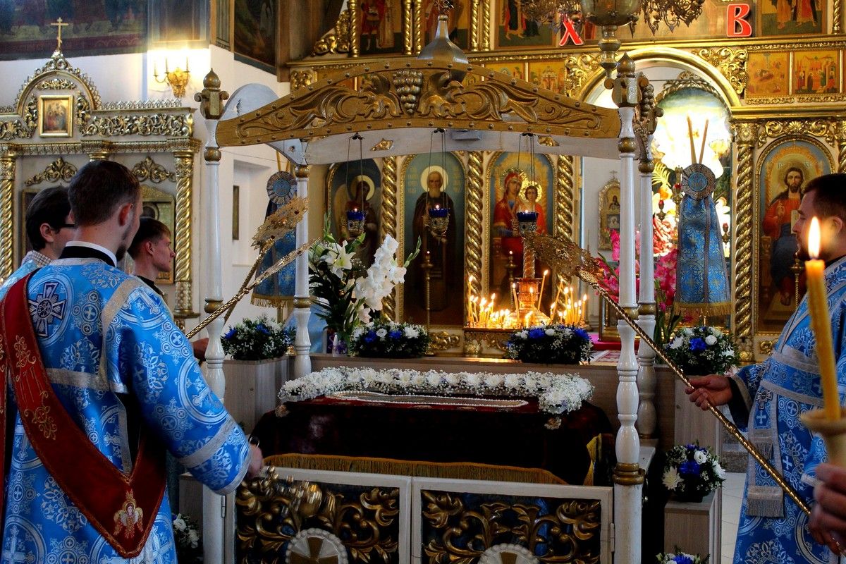 В канун праздника Успения Пресвятой Владычицы нашей Богородицы и Приснодевы Марии епископ Волжский и Сернурский Феофан возглавил Всенощное бдение с чином погребения Пресвятой Богородицы в Никольском кафедральном соборе г. Волжска.
