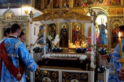 Во время Всенощного бдения перед Плащаницей, изнесённой из алтаря на середину храма, был совершён чин погребения Божией Матери.