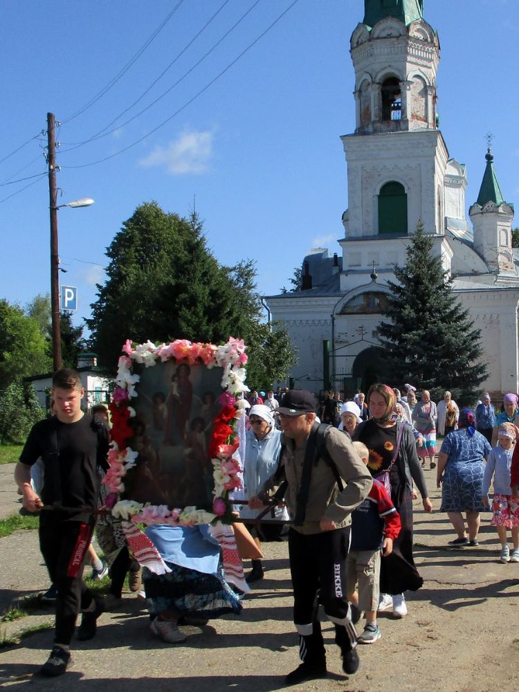 23 августа по аналогичной схеме крестный ход проследовал по 10-километровому маршруту из Шулки в храм Сретения Господня с. Кучка (настоятель – протоиерей Алексий Вязов, у которого как раз на эту дату пришелся день Ангела); 24 августа – 20 километров из Кучки в храм мучеников Флора и Лавра с. Табашино (настоятель – протоиерей Виктор Немцев) с заходом на святой источник Владимирской иконы Божией Матери у д. Ушаково, где был отслужен молебен; 25 августа – 20 километров из Табашина в храм Покрова Пресвятой Богородицы с. Упша (настоятель – протоиерей Михаил Нехорошков); 26 августа – 15 километров из Упши в храм Рождества Иоанна Предтечи пос. Оршанка (настоятель – протоиерей Димитрий Вылекжанин) с заходом на святые источники в д. Большая Орша, где был отслужен молебен. Следует отметить, что в ночь после прибытия крестного хода в Оршанку в здешнем храме шло традиционное молитвенное бдение с чтением акафистов в честь Пресвятой Богородицы.